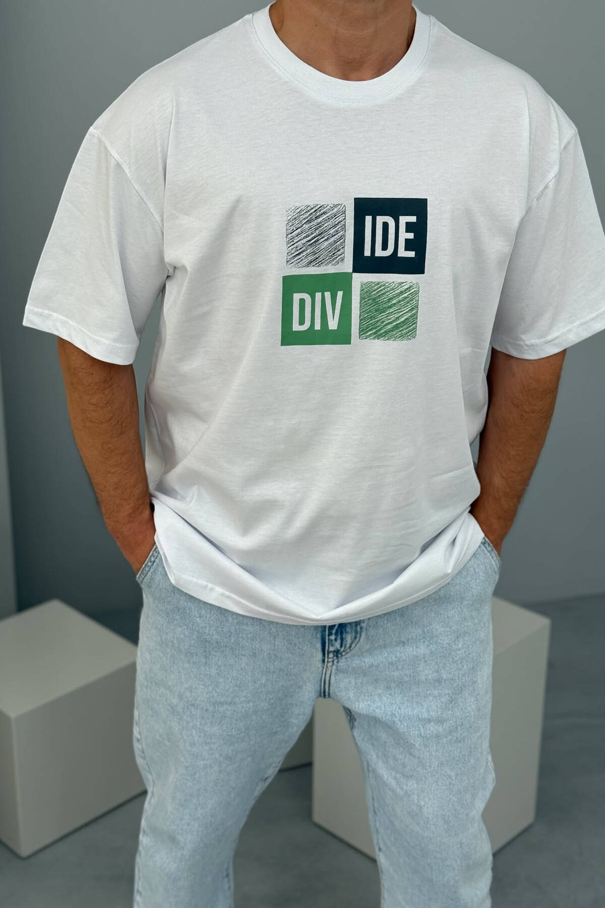 T-SHIRT I THJESHTË ME SHKRIME PËR MESHKUJ NË NGJYRËN E BARDHË