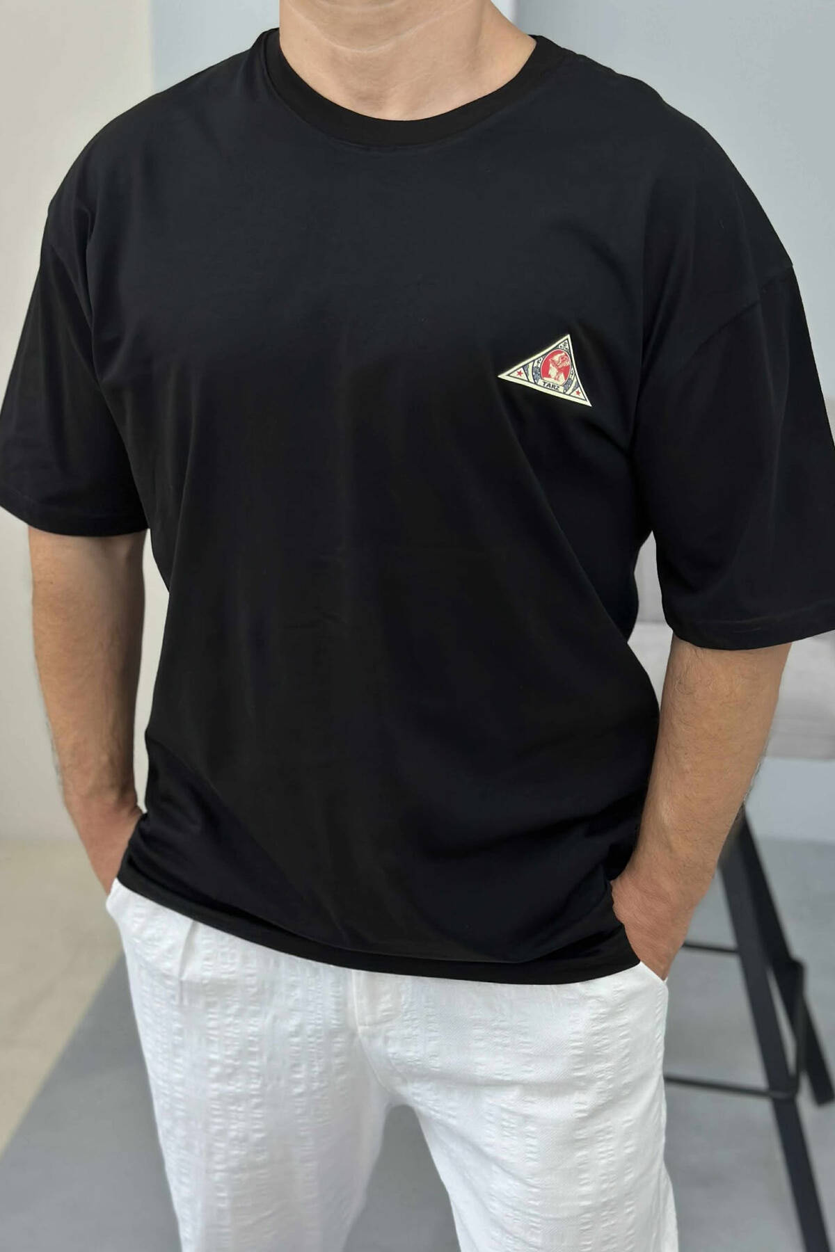 T-SHIRT NJË NGJYRËSH I THJESHTË PËR MESHKUJ NË NGJYRËN E ZEZË