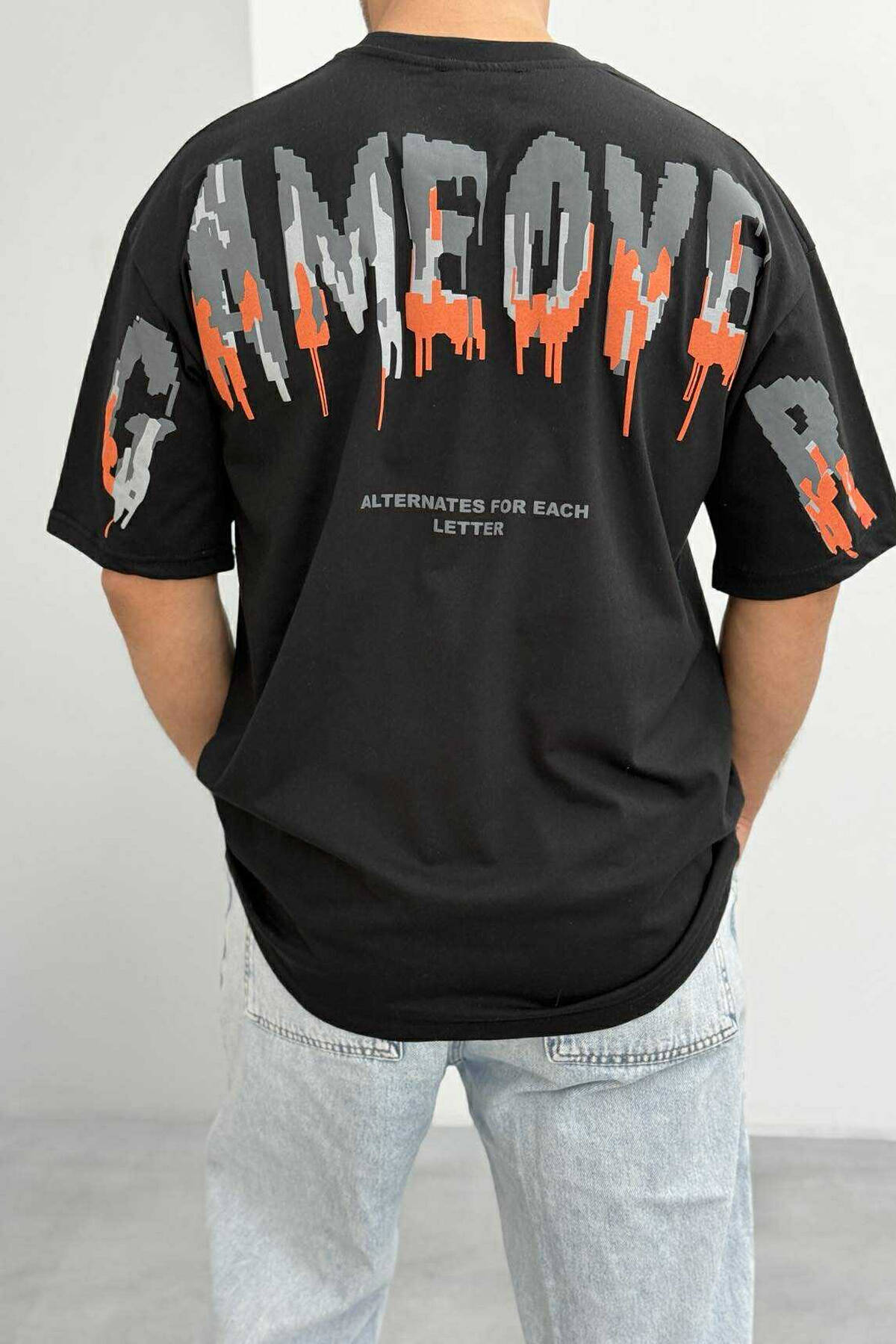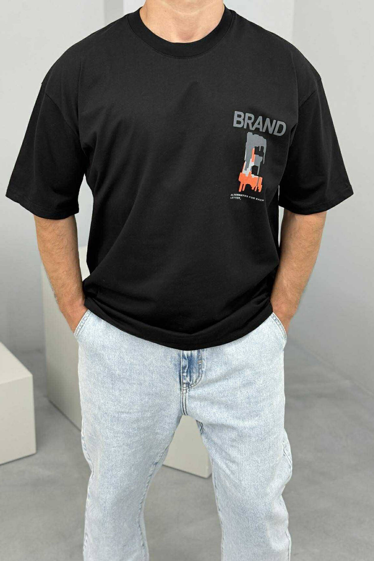 T-SHIRT I THJESHTË ME SHKRIME PËR MESHKUJ NË NGJYRËN E ZEZË
