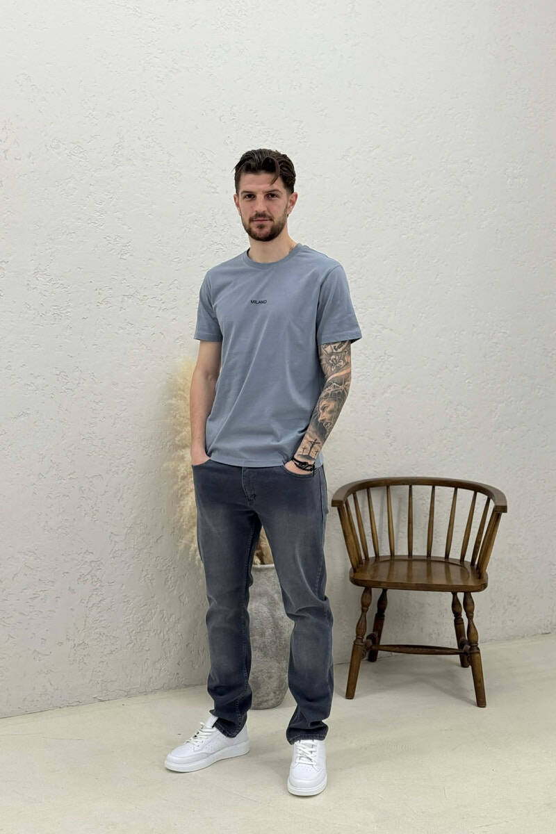 T-SHIRT I THJESHTË ME SHKRIME PËR MESHKUJ NË NGJYRËN GRI HIRI