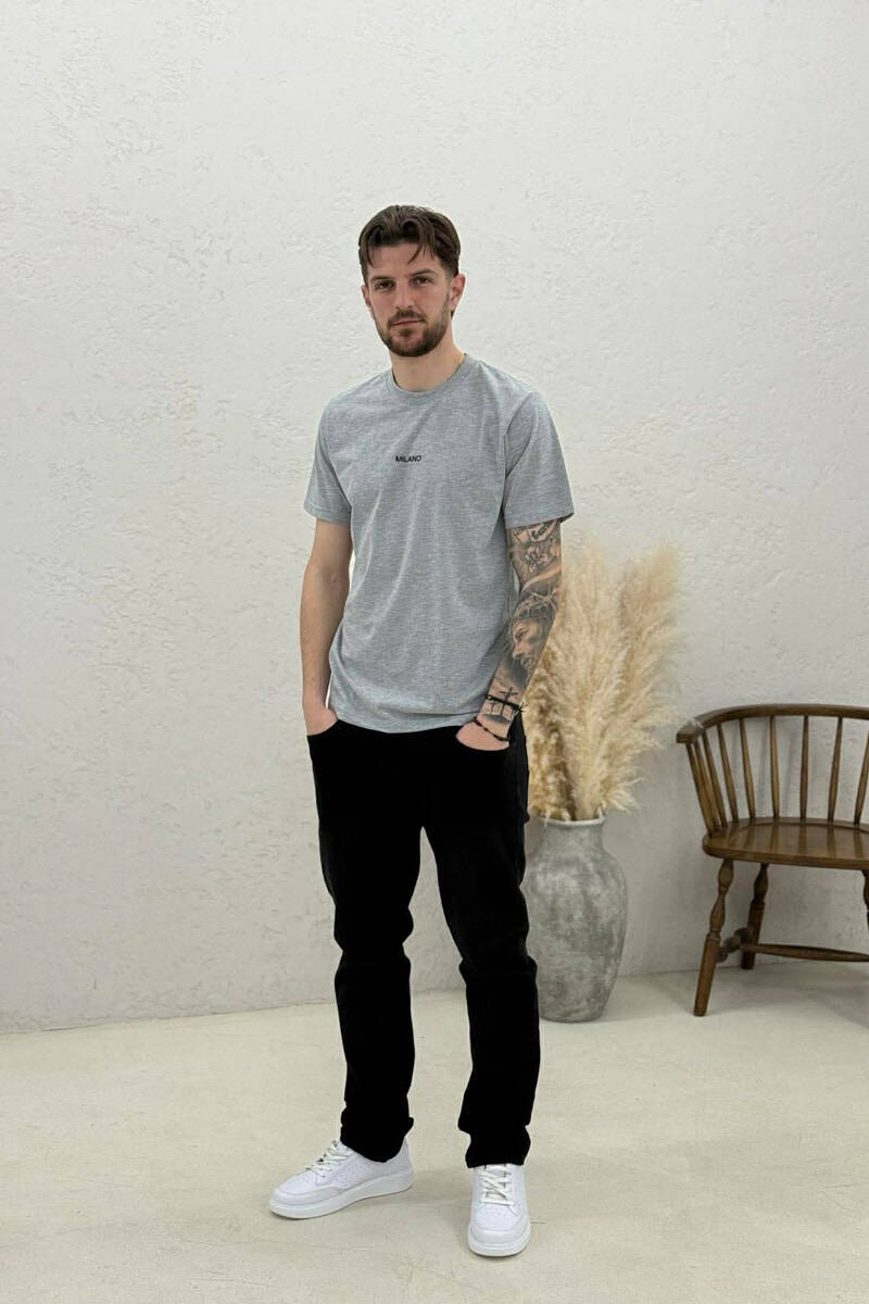 T-SHIRT I THJESHTË ME SHKRIME PËR MESHKUJ NË NGJYRËN GRI TE ZBARDHUR