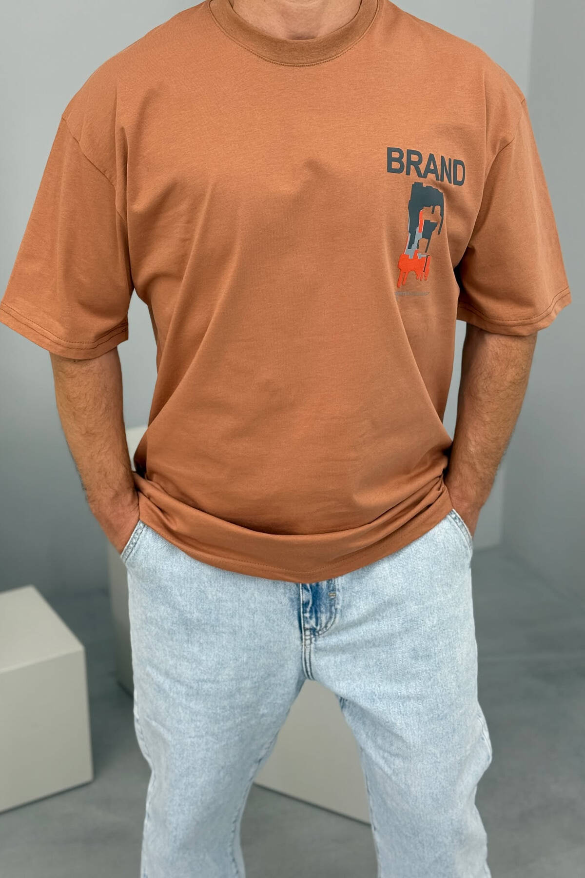 T-SHIRT I THJESHTË ME SHKRIME PËR MESHKUJ NË NGJYRËN KAFE