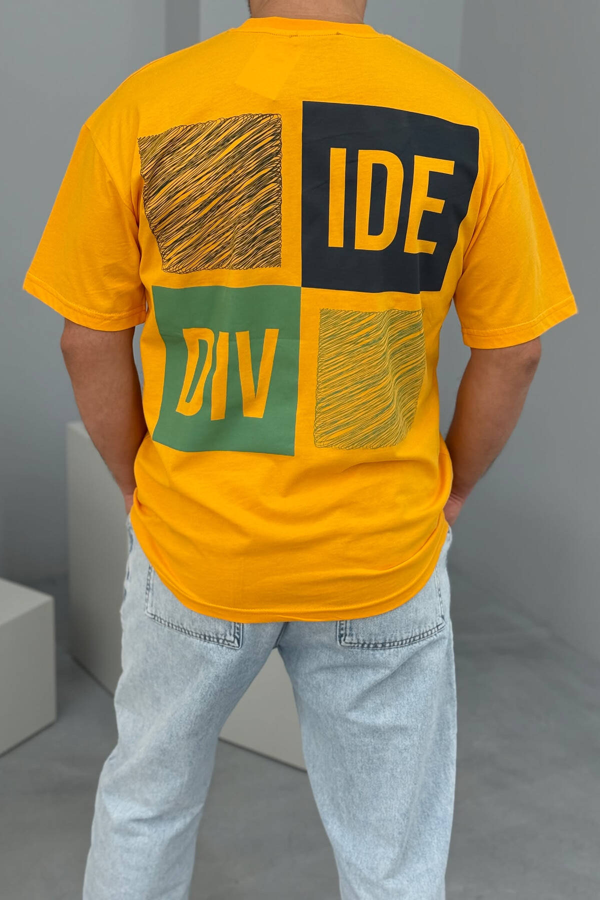 T-SHIRT I THJESHTË ME SHKRIME PËR MESHKUJ NË NGJYRËN E VERDHË