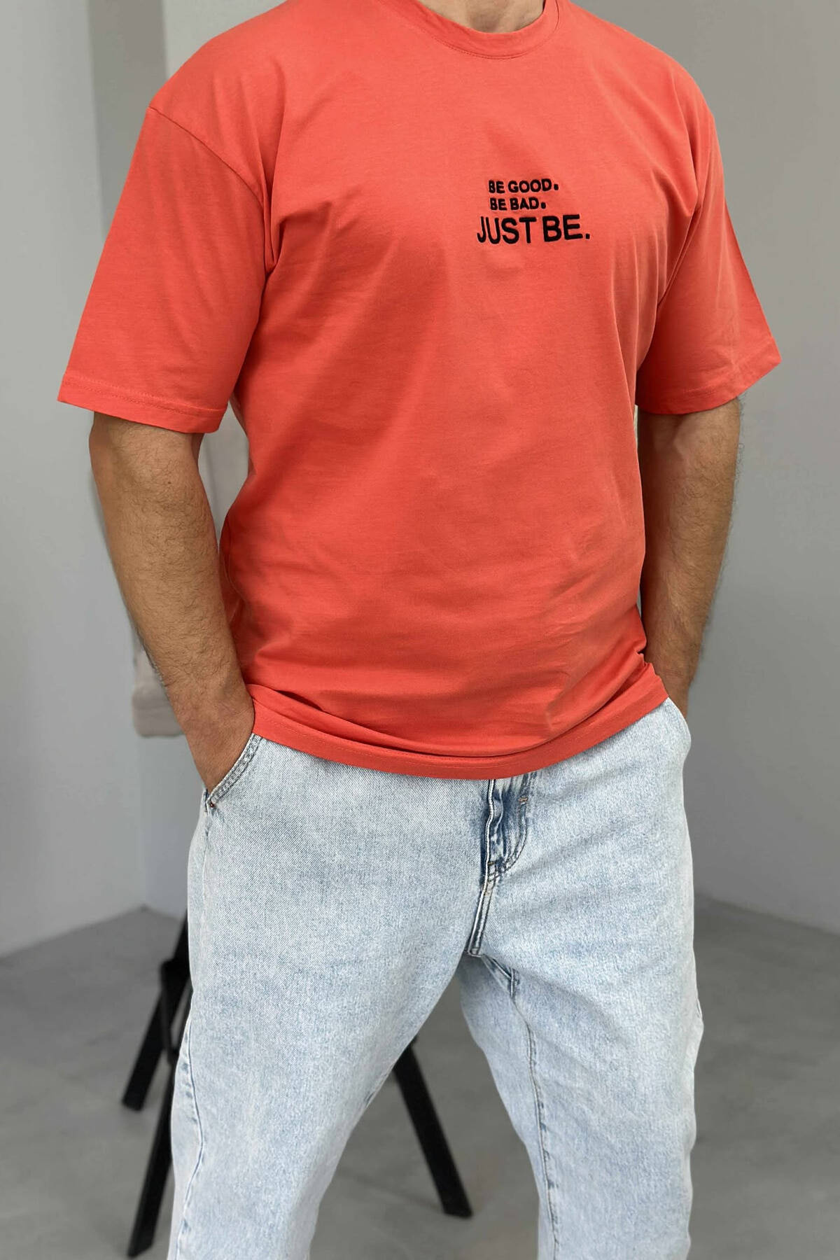 T-SHIRT NJË NGJYRËSH I THJESHTË PËR MESHKUJ NË NGJYRËN PORTOKALLI