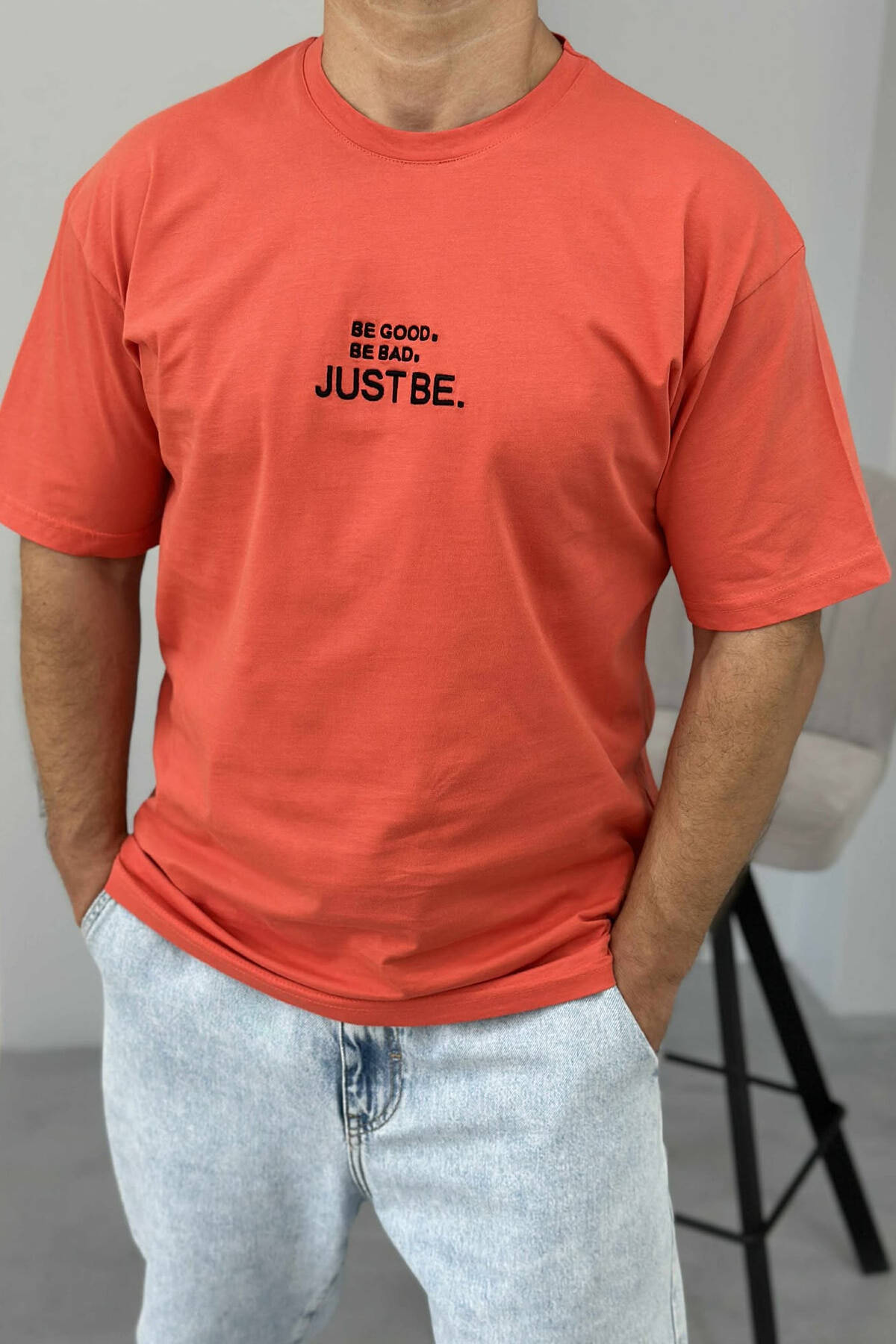 T-SHIRT I THJESHTË ME SHKRIME PËR MESHKUJ NË NGJYRËN PORTOKALLI