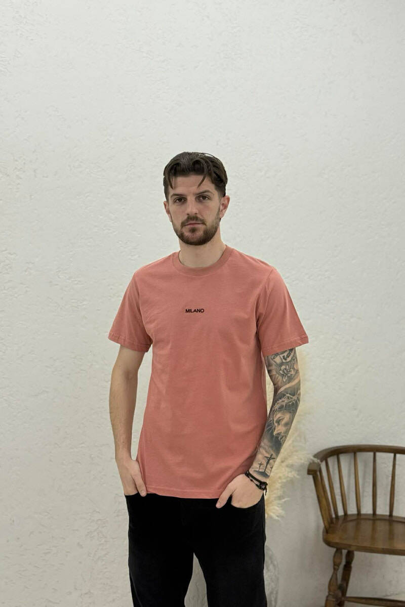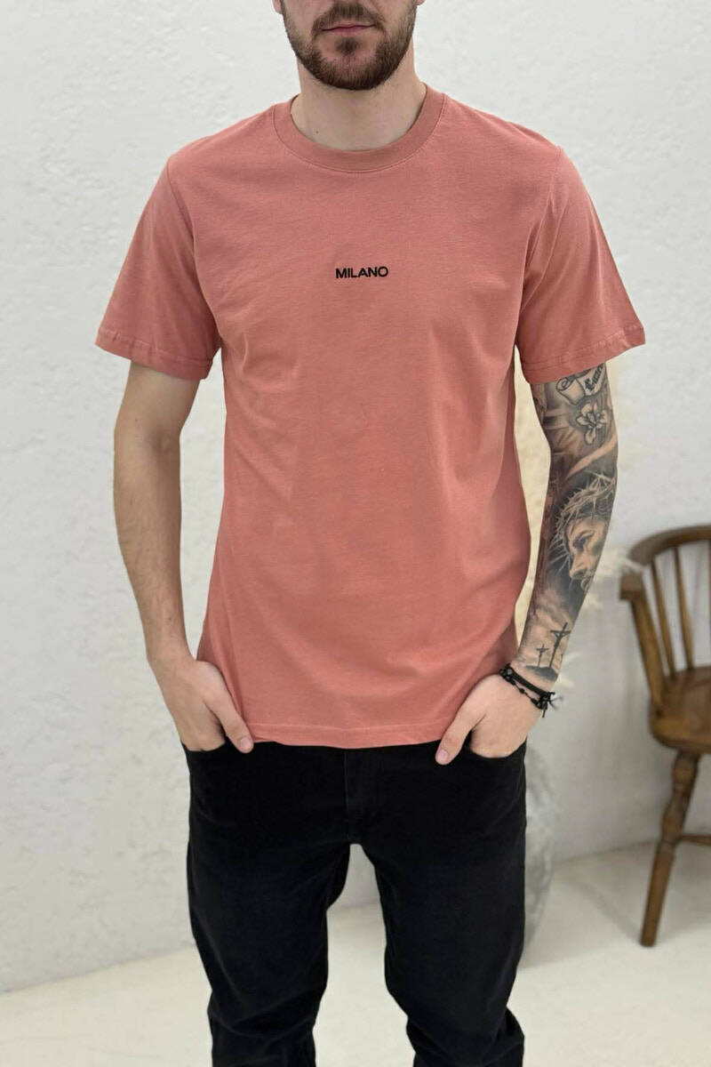 T-SHIRT I THJESHTË ME SHKRIME PËR MESHKUJ NË NGJYRËN PUDER