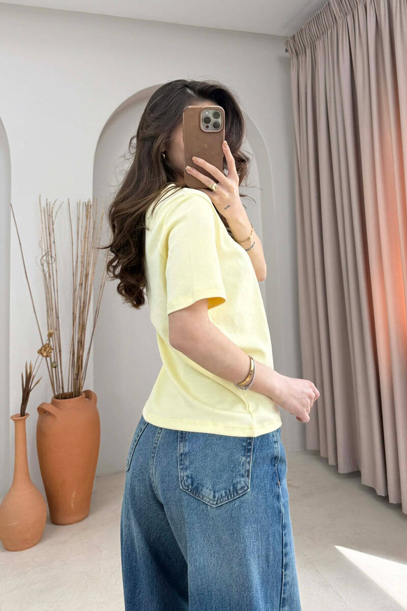 T-SHIRT I THJESHTE NJE NGJYRESH PER FEMRA NE NGJYRE LIMON