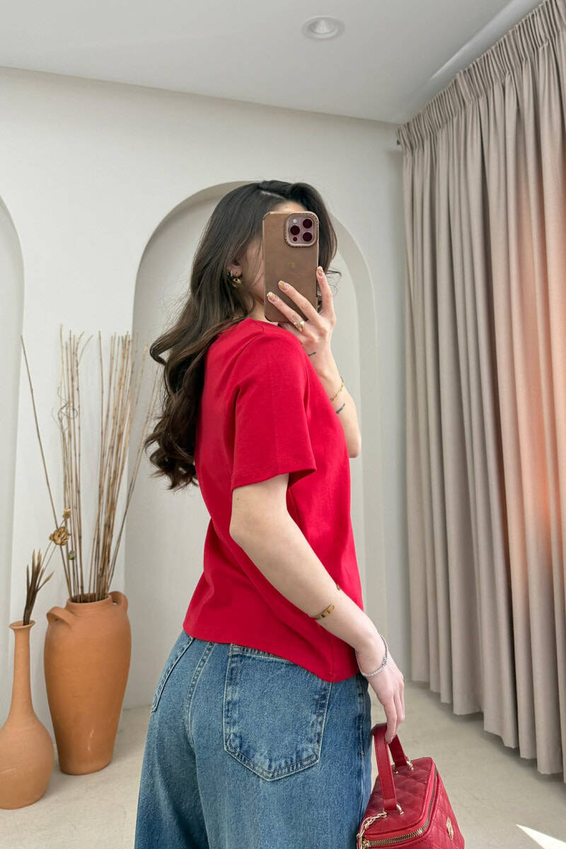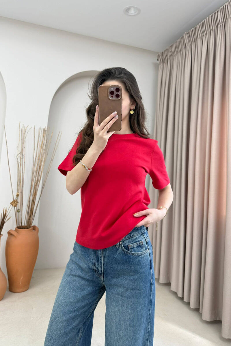 T-SHIRT I THJESHTE NJE NGJYRESH PER FEMRA NE NGJYRE TE KUQE
