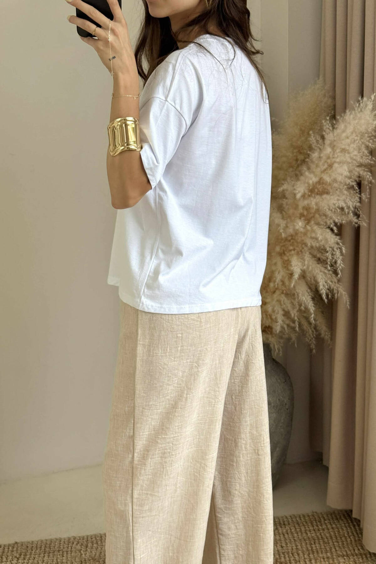 T-SHIRT I THJESHTË PËR FEMRA ME SHKRIM VOILA NË NGJYRËN E BARDHË