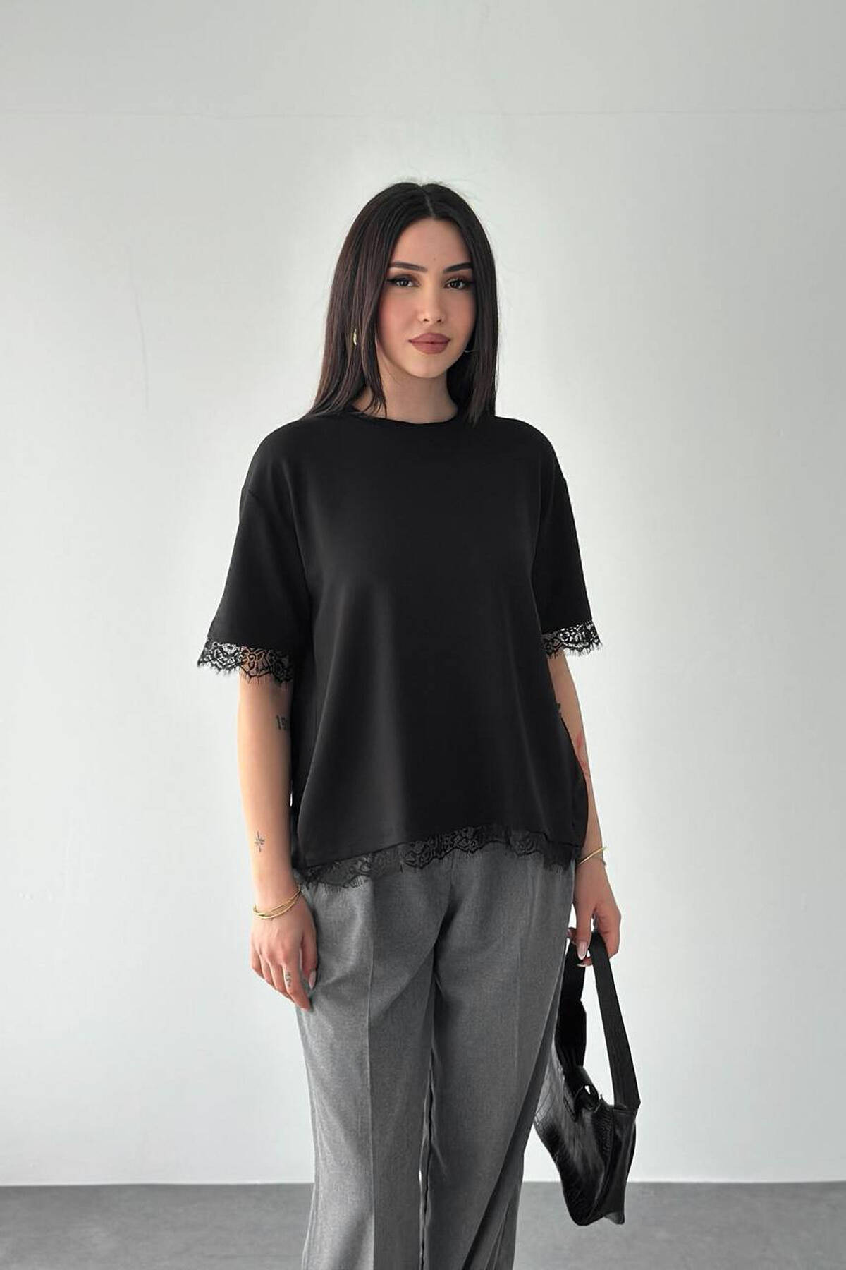 T-SHIRT ME DETAJ DANTELLE PER FEMRA NE NGJYRE TE ZEZE