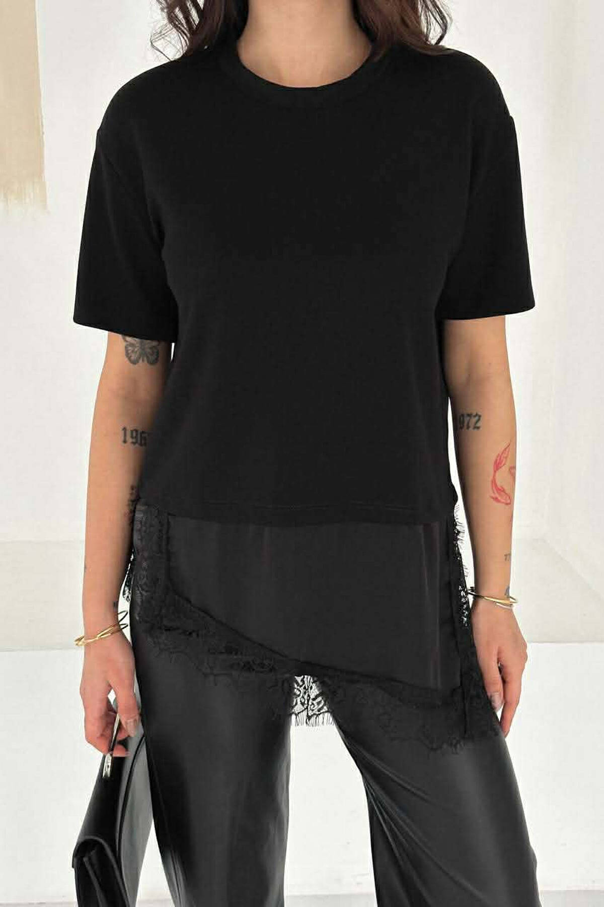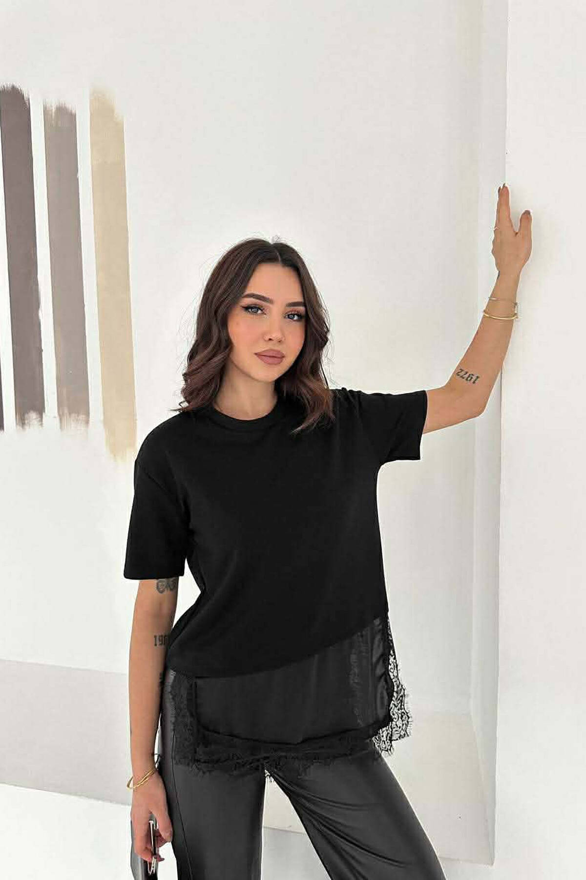 T-SHIRT ME DETAJ SATENI PER FEMRA NE NGJYRE TE ZEZE