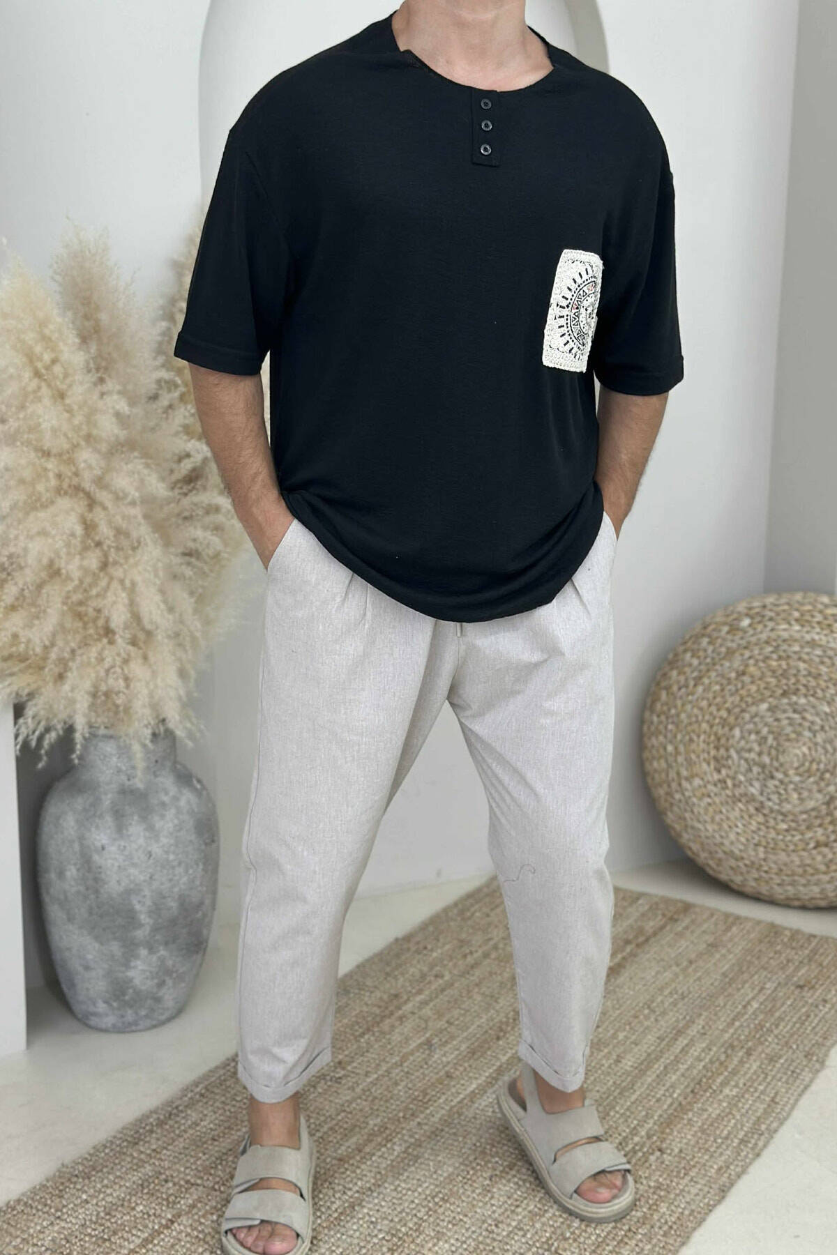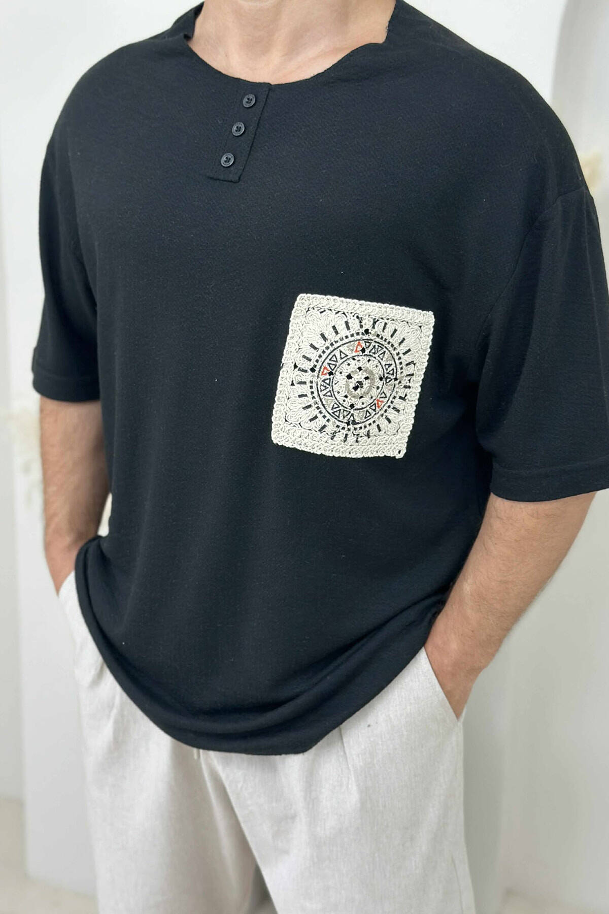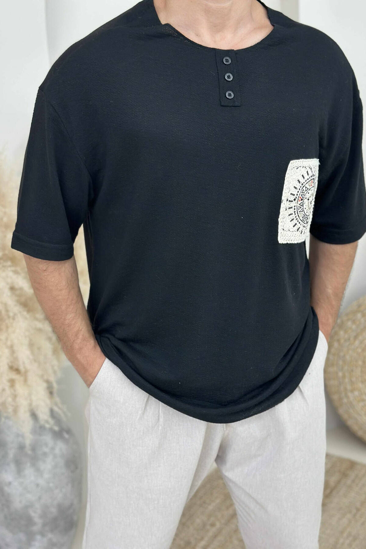 T-SHIRT ME DETAJE TË THJESHTA PËR MESHKUJ NË NGJYRËN E ZEZË