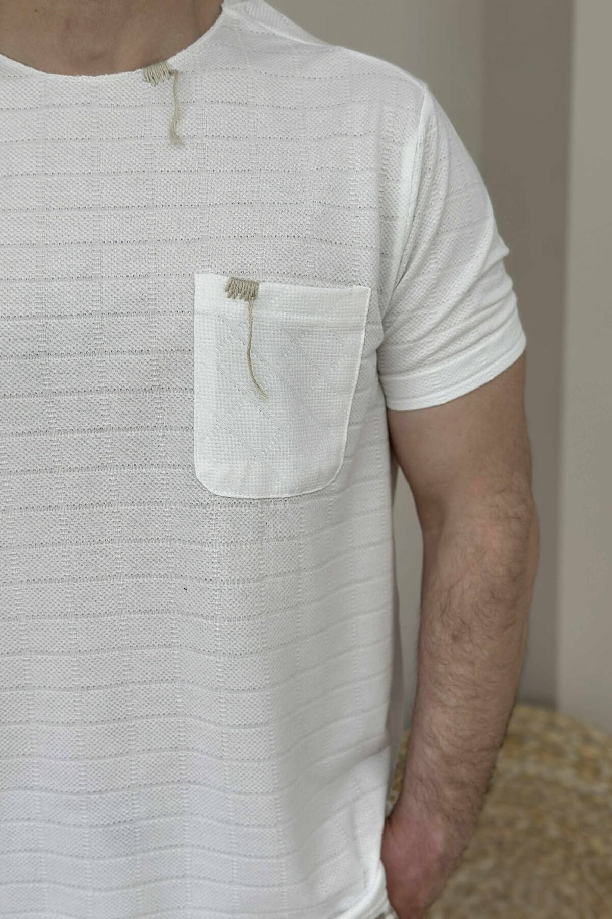 T-SHIRT ME DETAJIN E XHEPIT PËR MEHSKUJ NË NGJYRËN E BARDHË