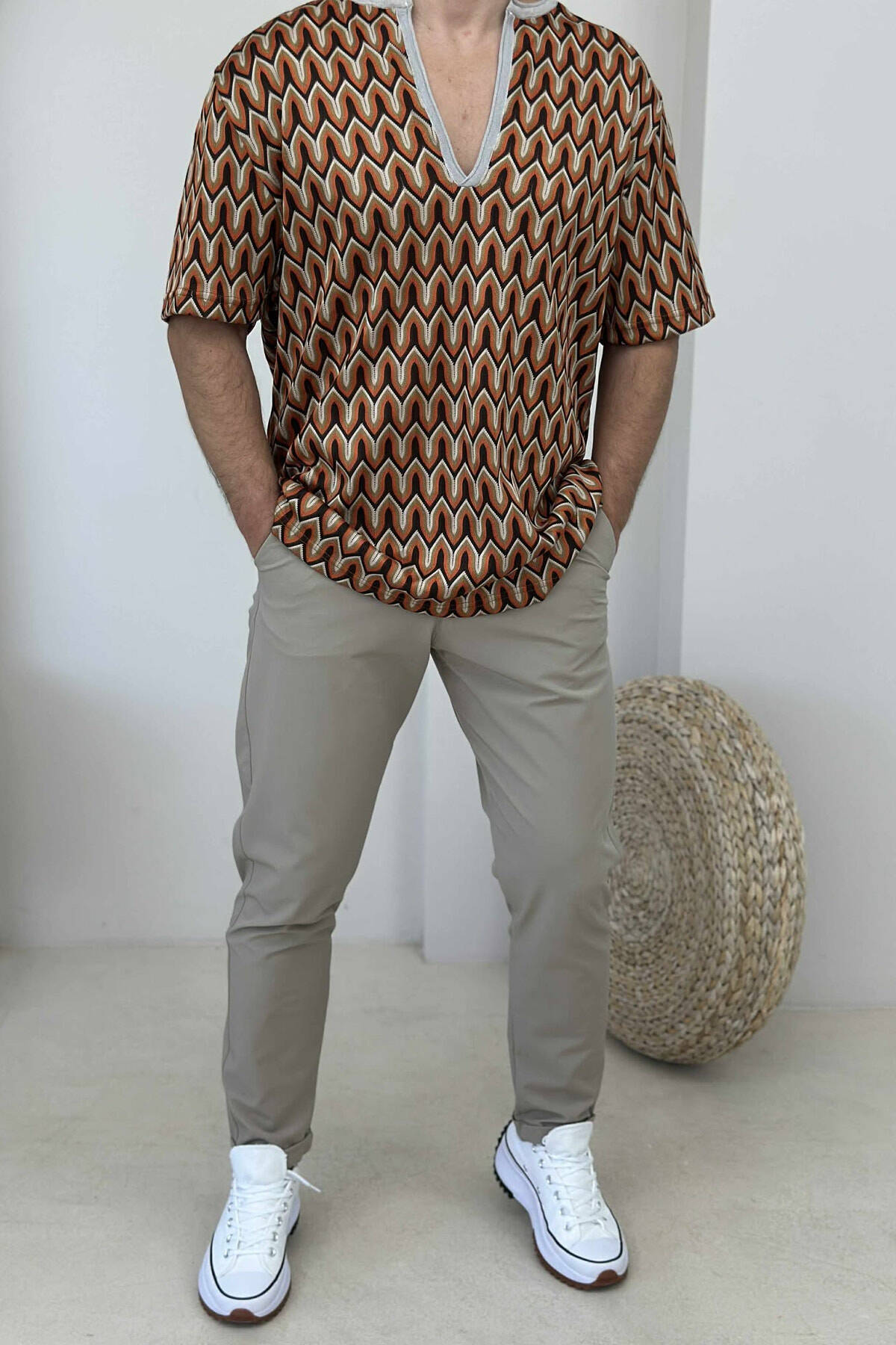 T-SHIRT ME DIZAJN ME JAKË V PËR MESHKUJ NË NGJYRË KAFE