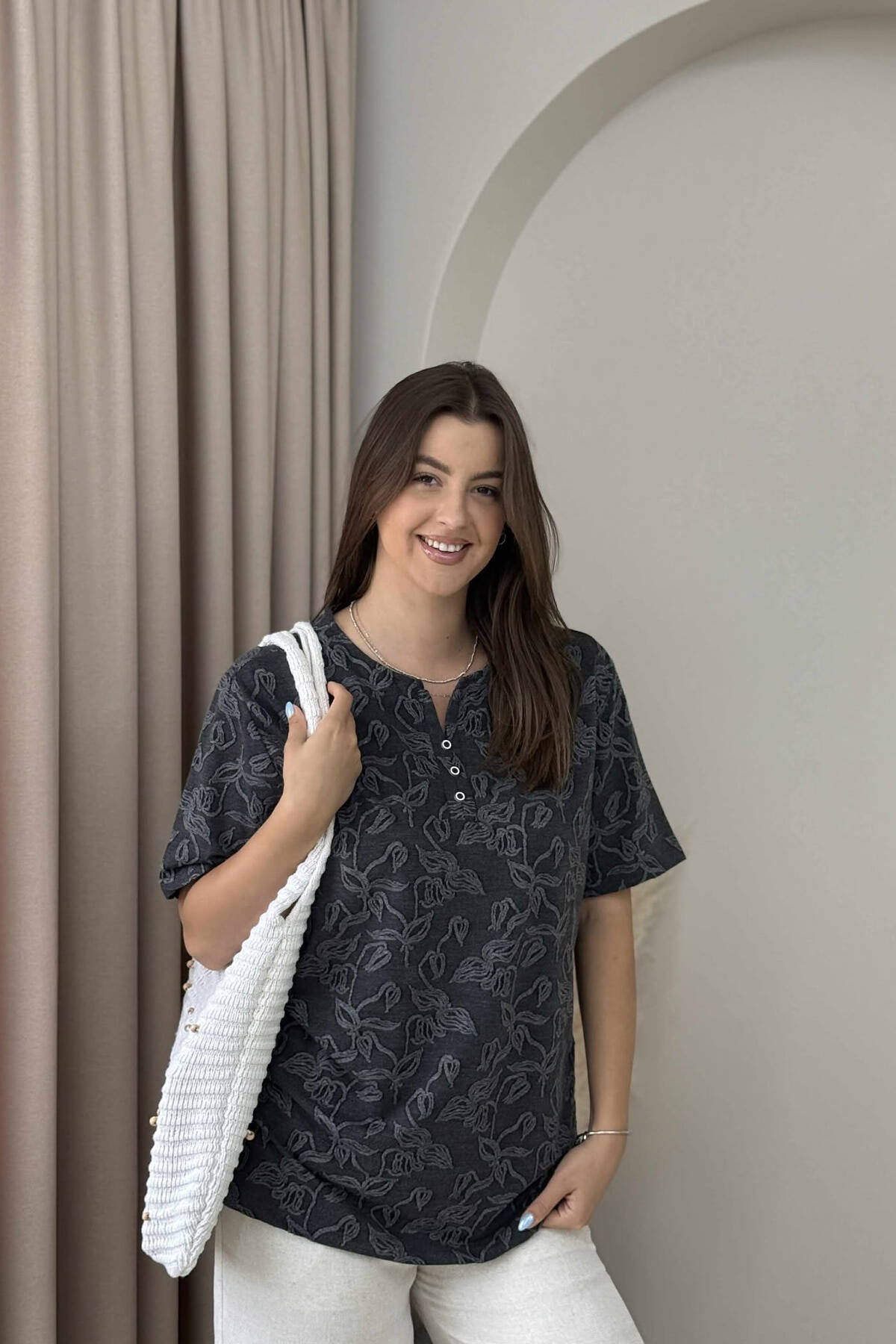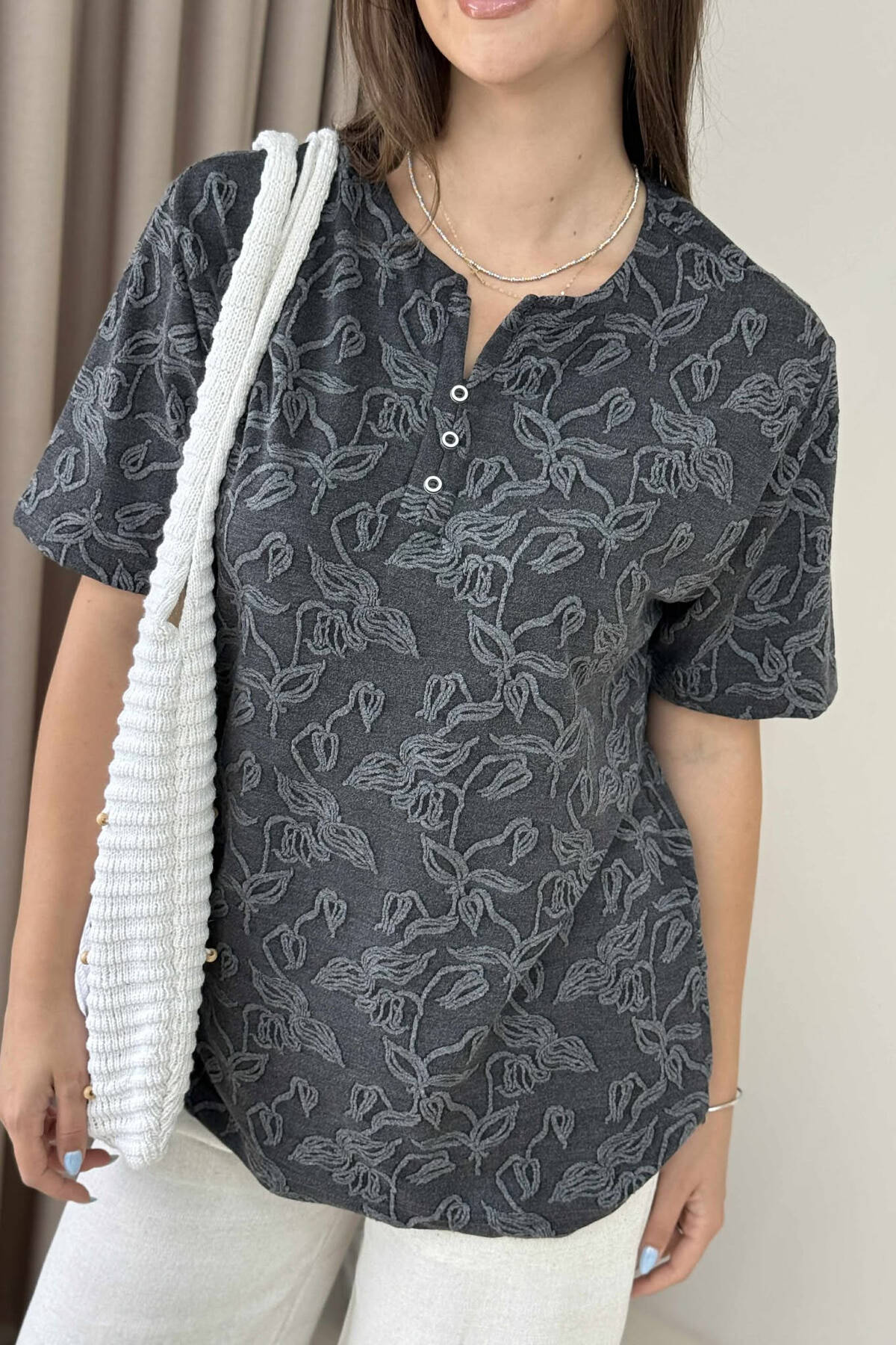 T-SHIRT NJË NGJYRËSH I THJESHTË PËR FEMRA NË NGJYRËN GRI E ERRËT