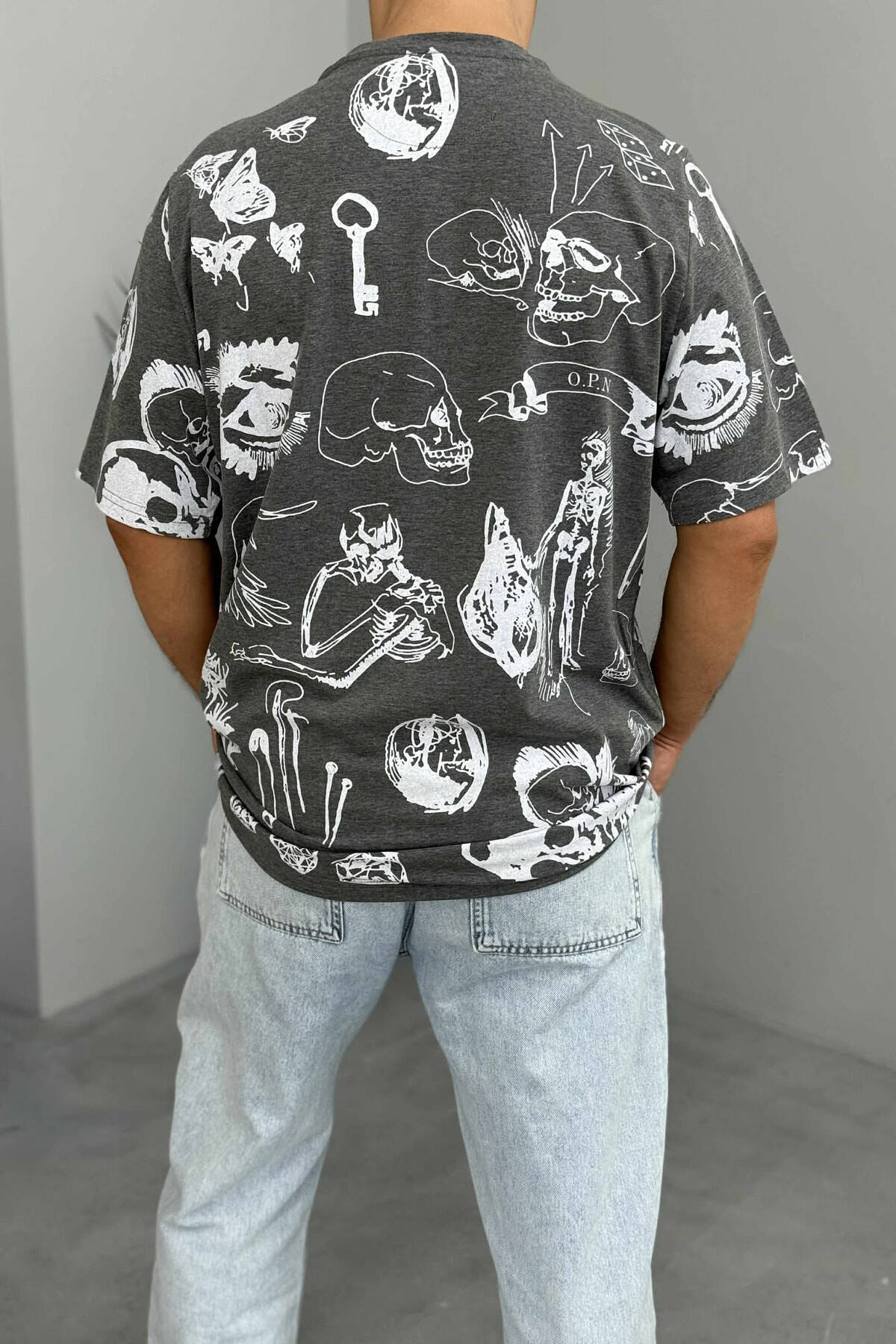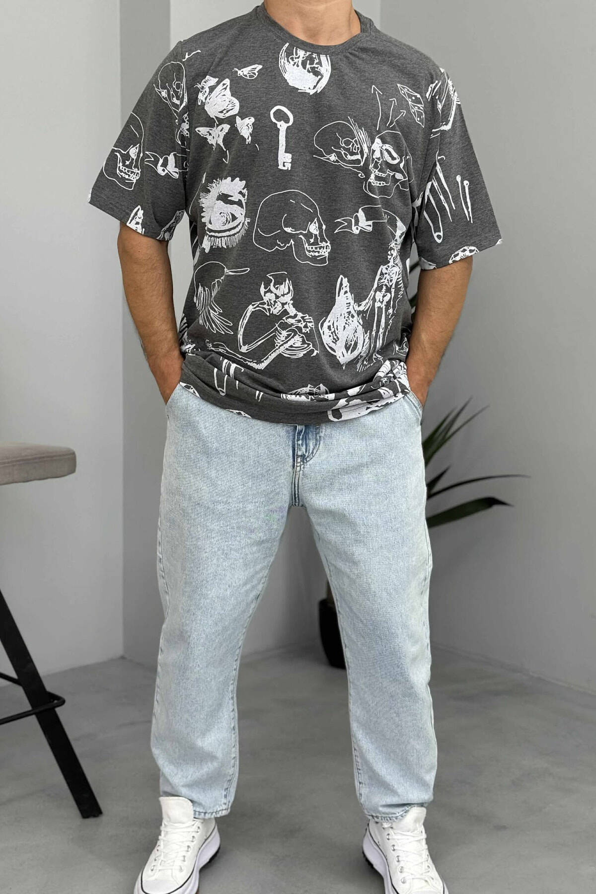 T-SHIRT ME DIZANJE DHE JAKË TË RRUMBULLAKËT PËR MESHKUJ NË NGJYRËN GRI E ERRËT