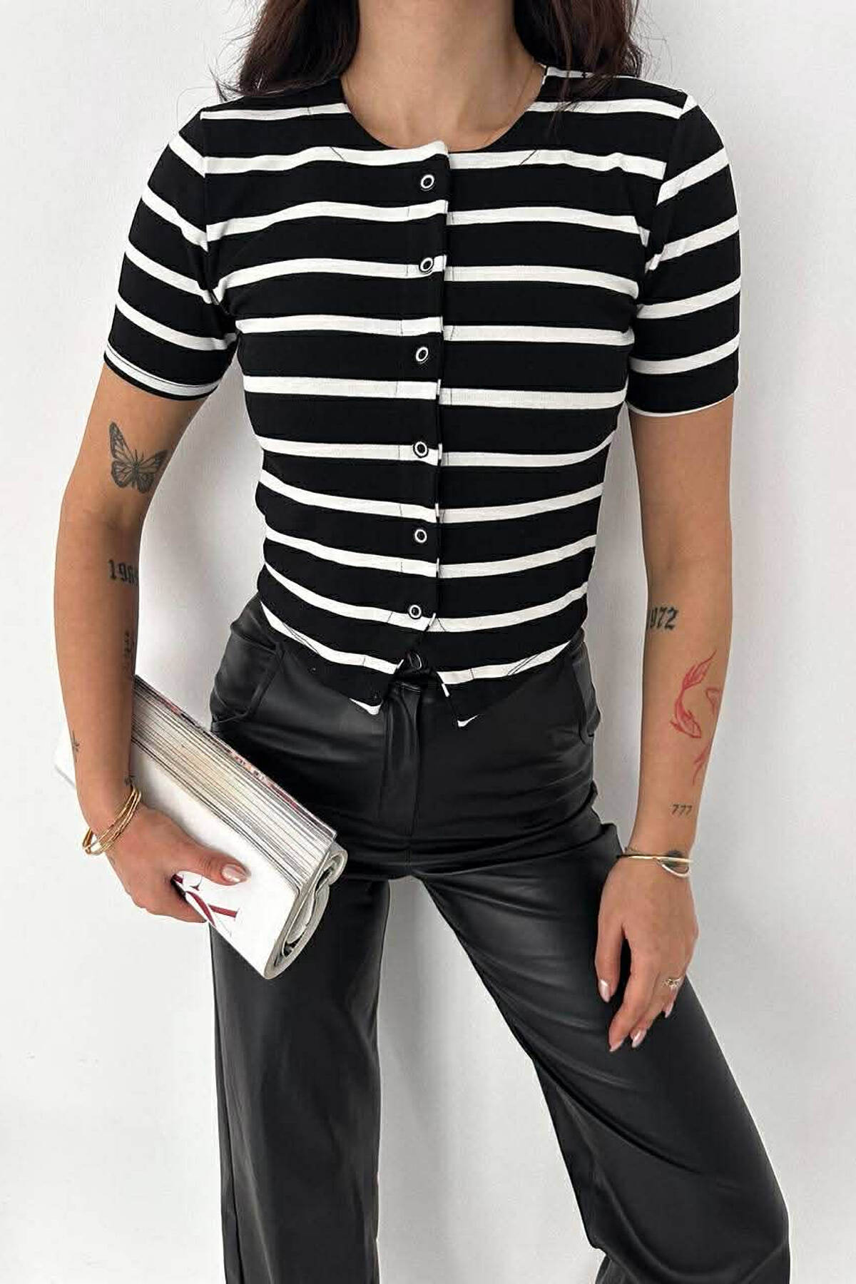 T-SHIRT ME DETAJE TEK PJESA E QAFES PER FEMRA NE NGJYRE TE ZEZE