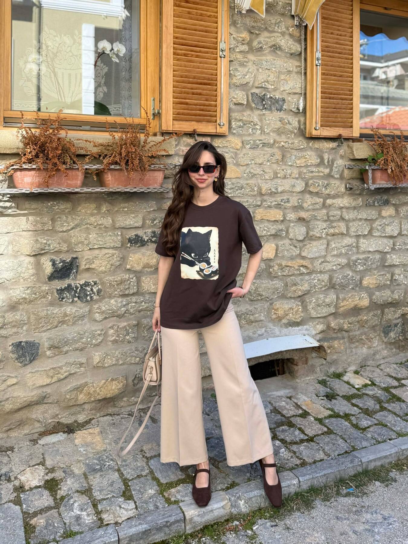 T-SHIRT ME IMAZH NE PJESEN PARA PER FEMRA NE NGJYRE KAFE