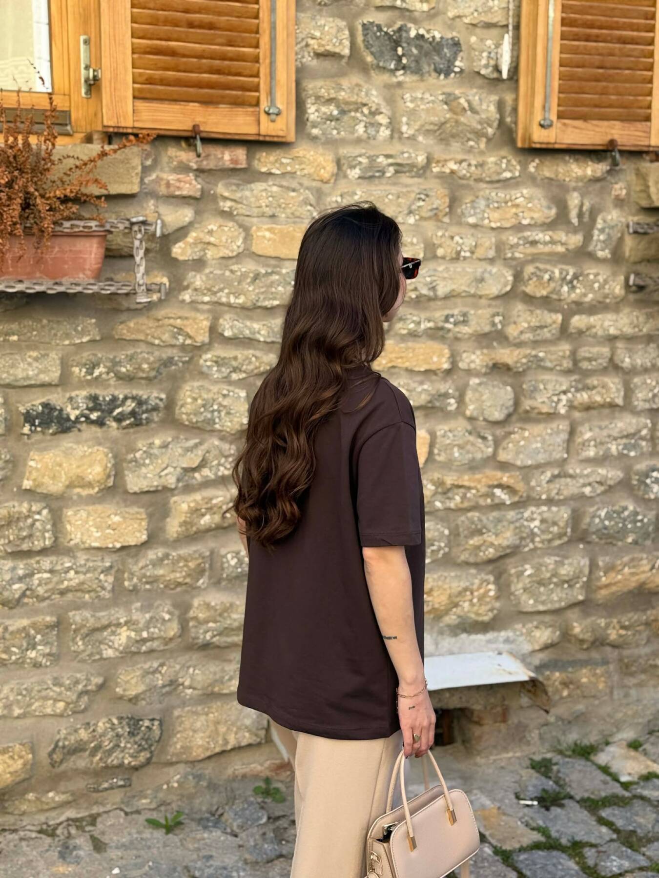 T-SHIRT I THJESHTE NJE NGJYRESH PER FEMRA NE NGJYRE KAFE