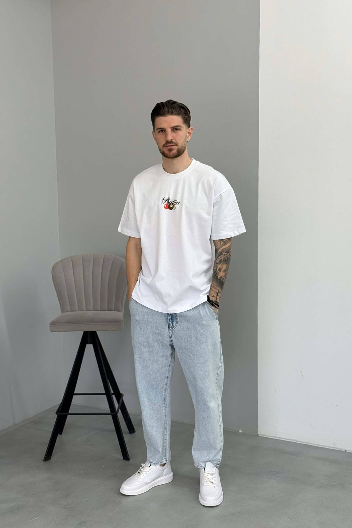 T-SHIRT ME IMAZH NE PJESEN PAS PER MESHKUJ NE NGJYRE TE BARDHE