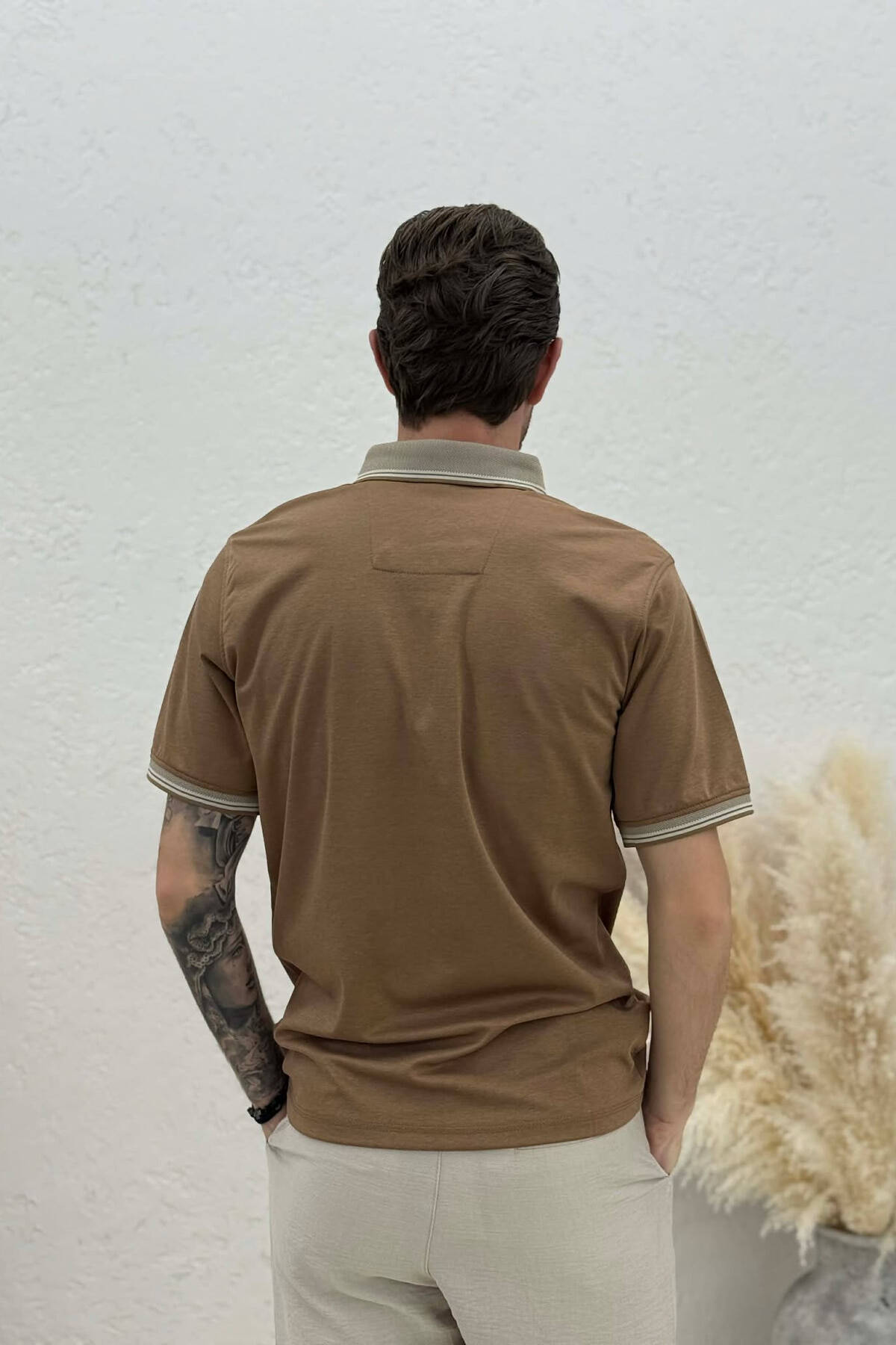 TEXTURED POLO NECK MEN T SHIRT BEIGE/BEZHE