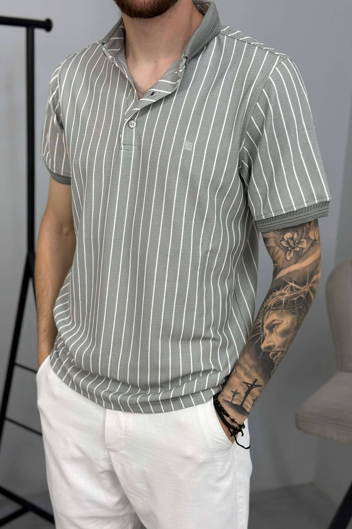 T-SHIRT ME JAKE POLO DHE ME DIZAJN VIJASH PER MESHKUJ NE NGJYRE GRI
