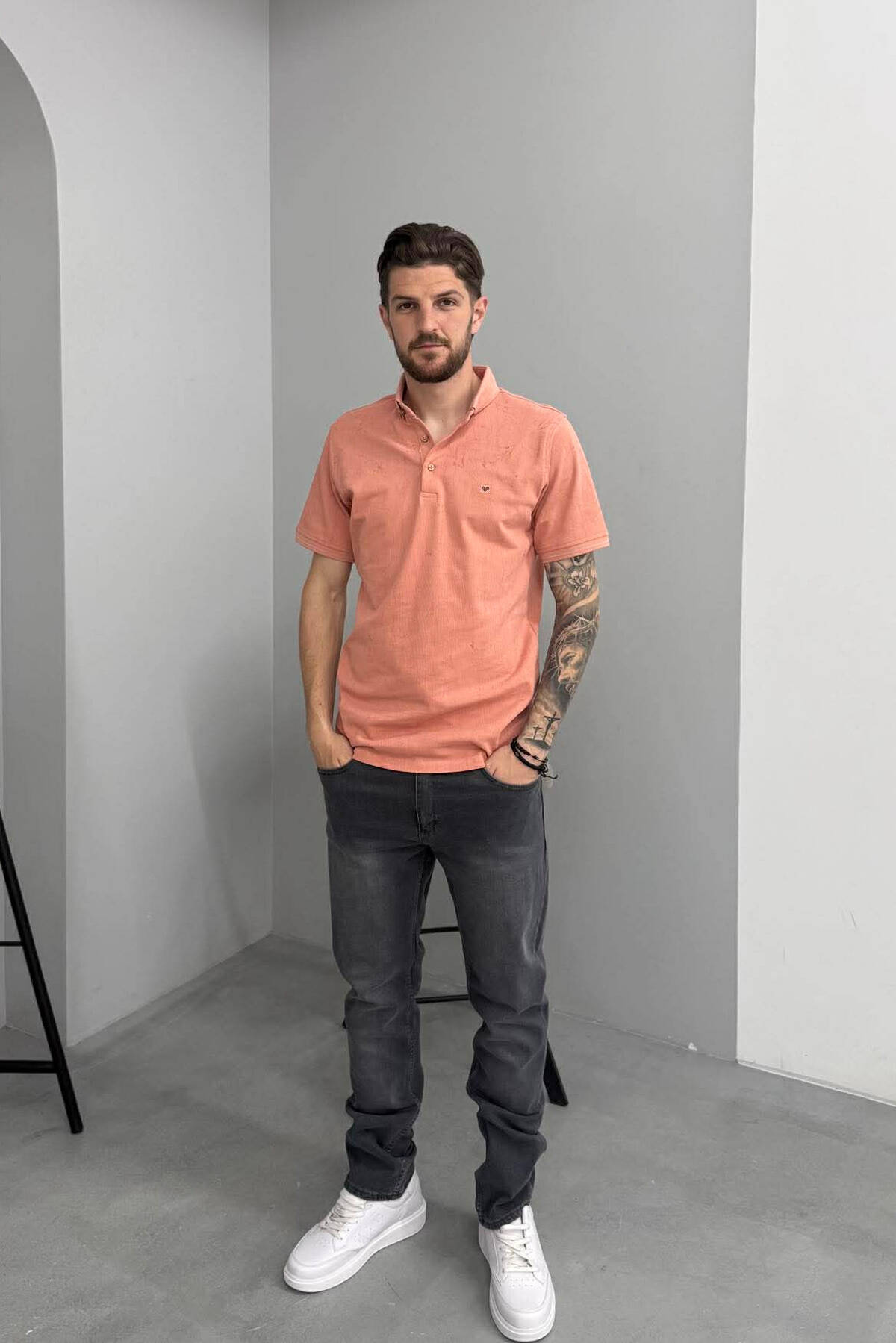 T-SHIRT ME JAKE POLO PER MESHKUJ NE NGJYRE SALMON