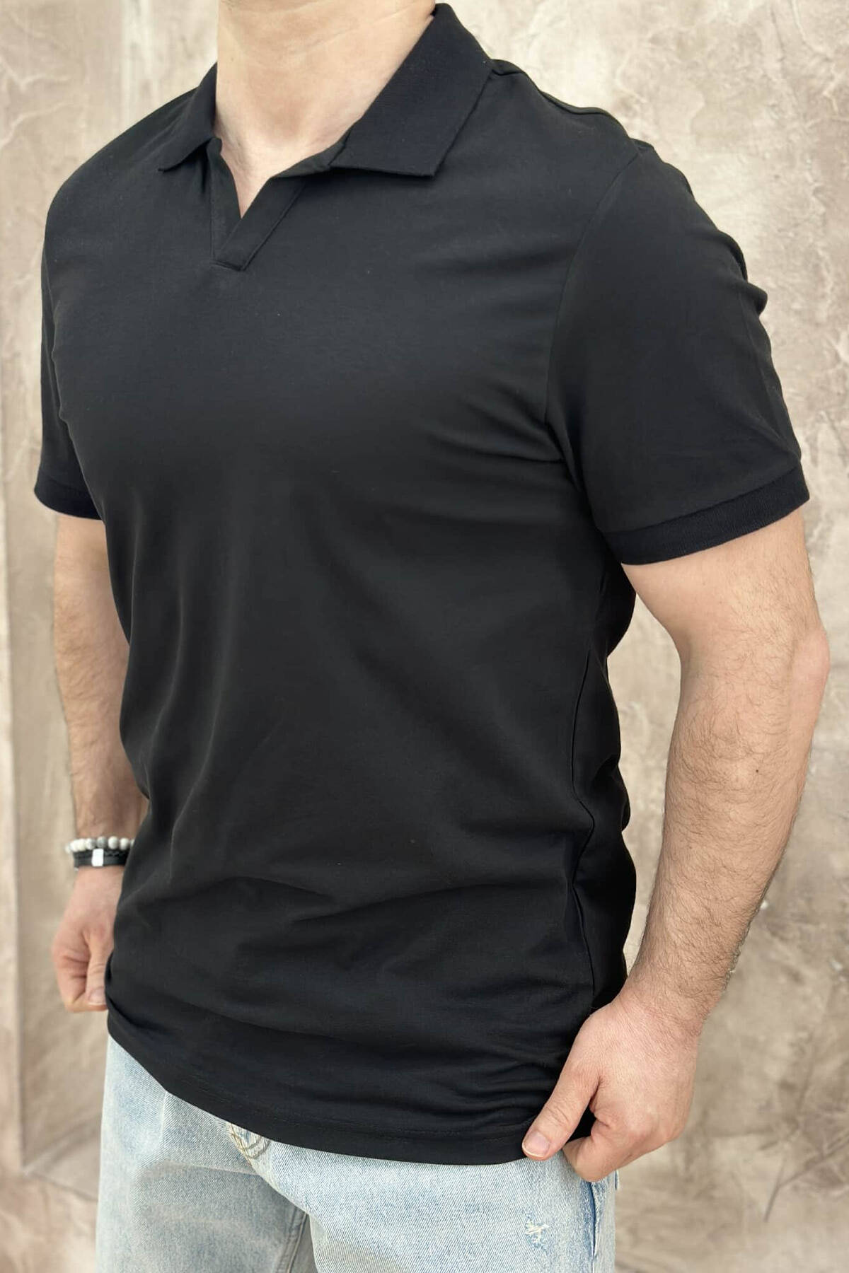 T-SHIRT ME JAKË POLO PËR MESHKUJ NË NGJYRËN E ZEZË