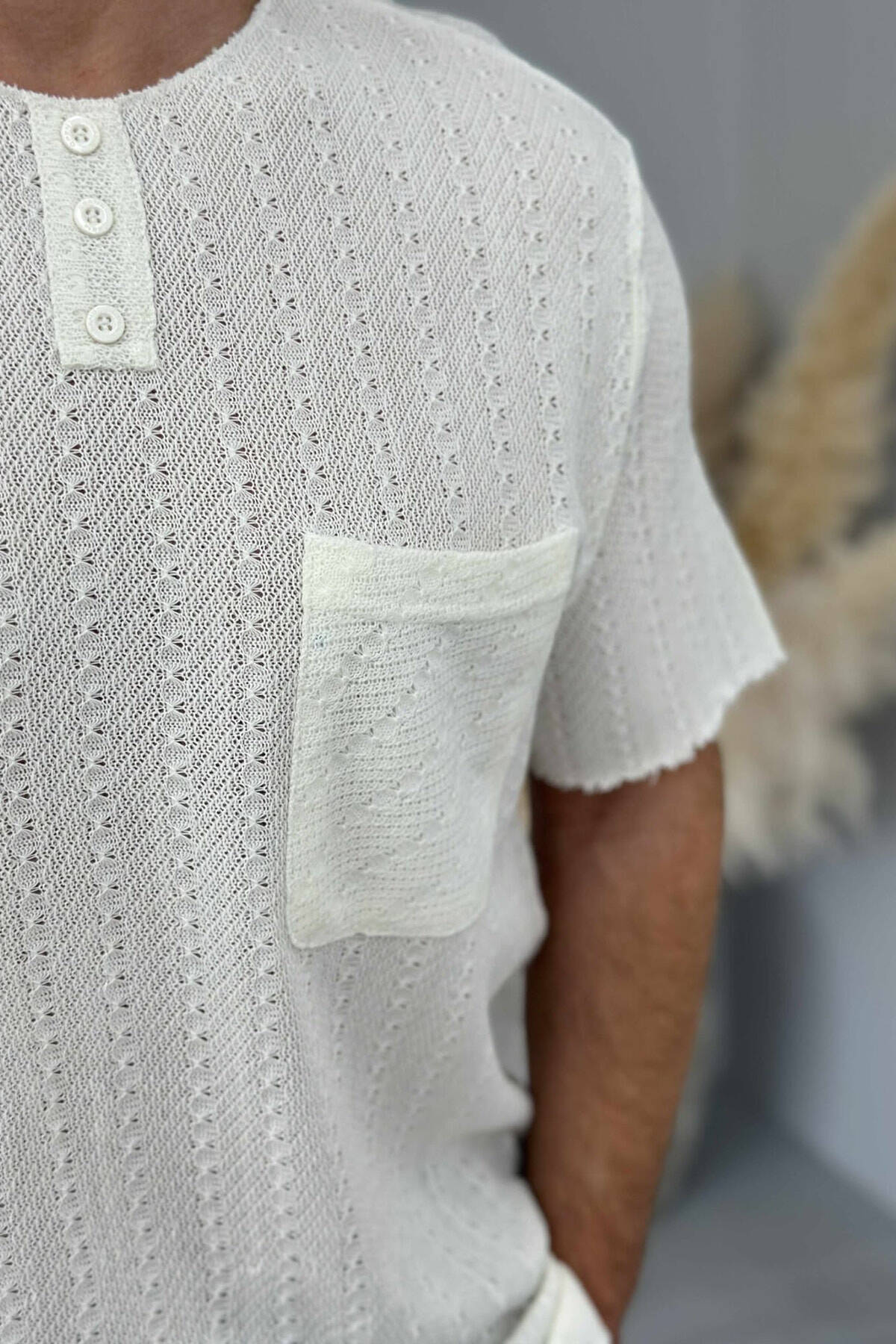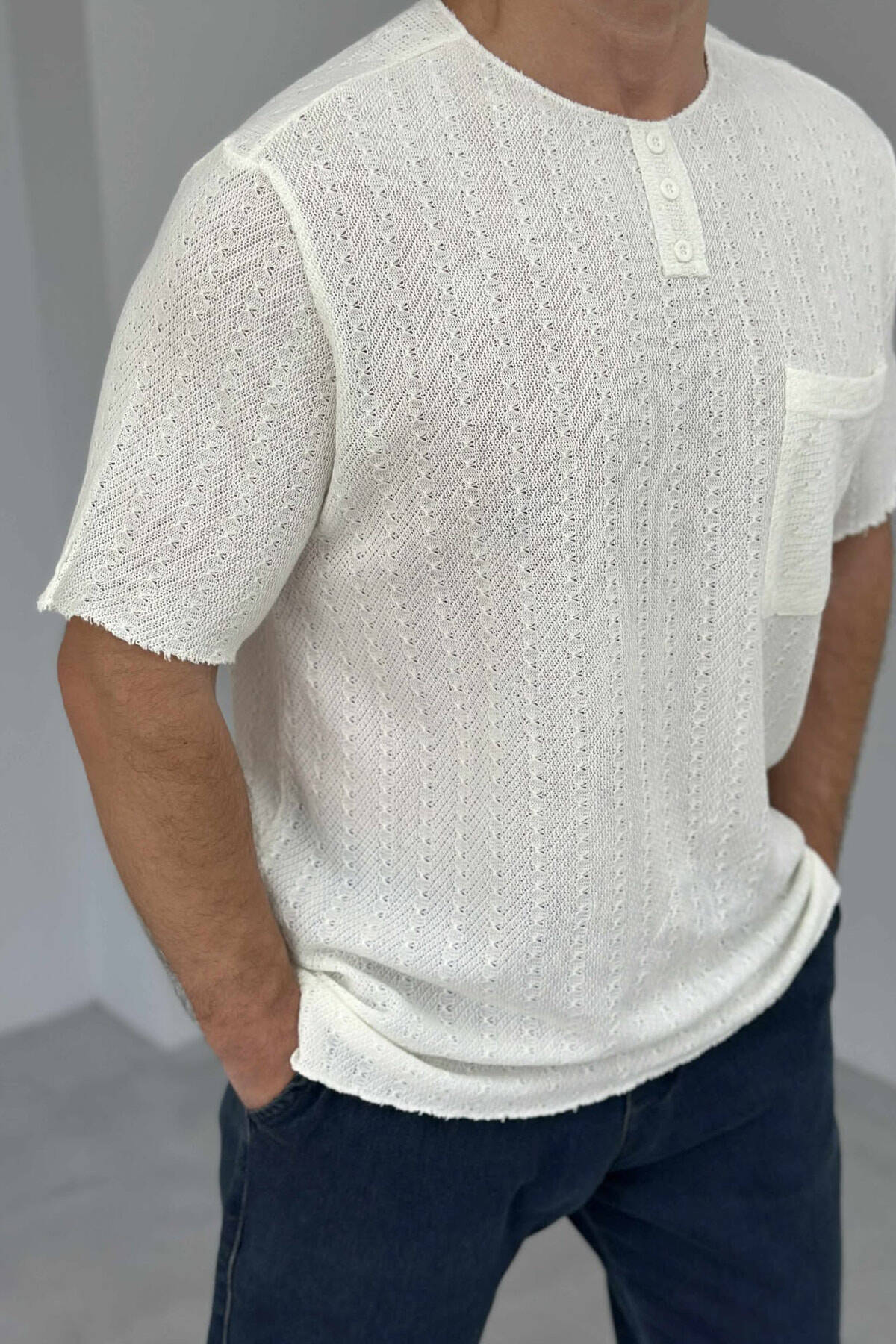 T-SHIRT ME KOPSA ME DETAJIN E XHEPIT PËR MESHKUJ NË NGJYRËN KREM