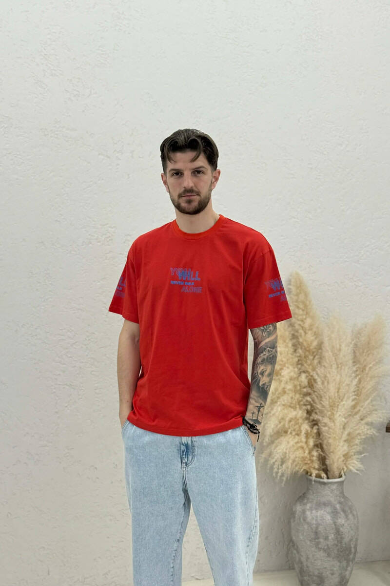 T-SHIRT ME SHKRIM PARA & PAS PER MESHKUJ NE NGJYRE PORTOKALLI TE ERRET