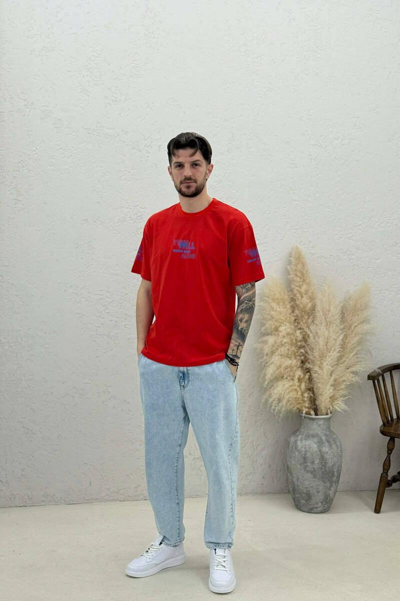 T-SHIRT I THJESHTË ME SHKRIME PËR MESHKUJ NË NGJYRËN PUDER