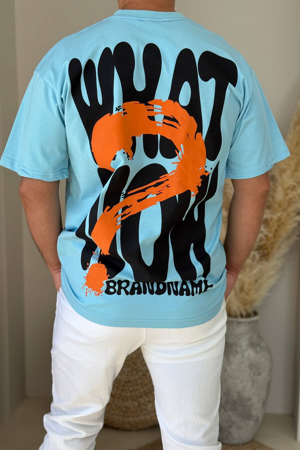 T-SHIRT I THJESHTË ME SHKRIME PËR MESHKUJ NË NGJYRËN BLU E ZBARDHUR