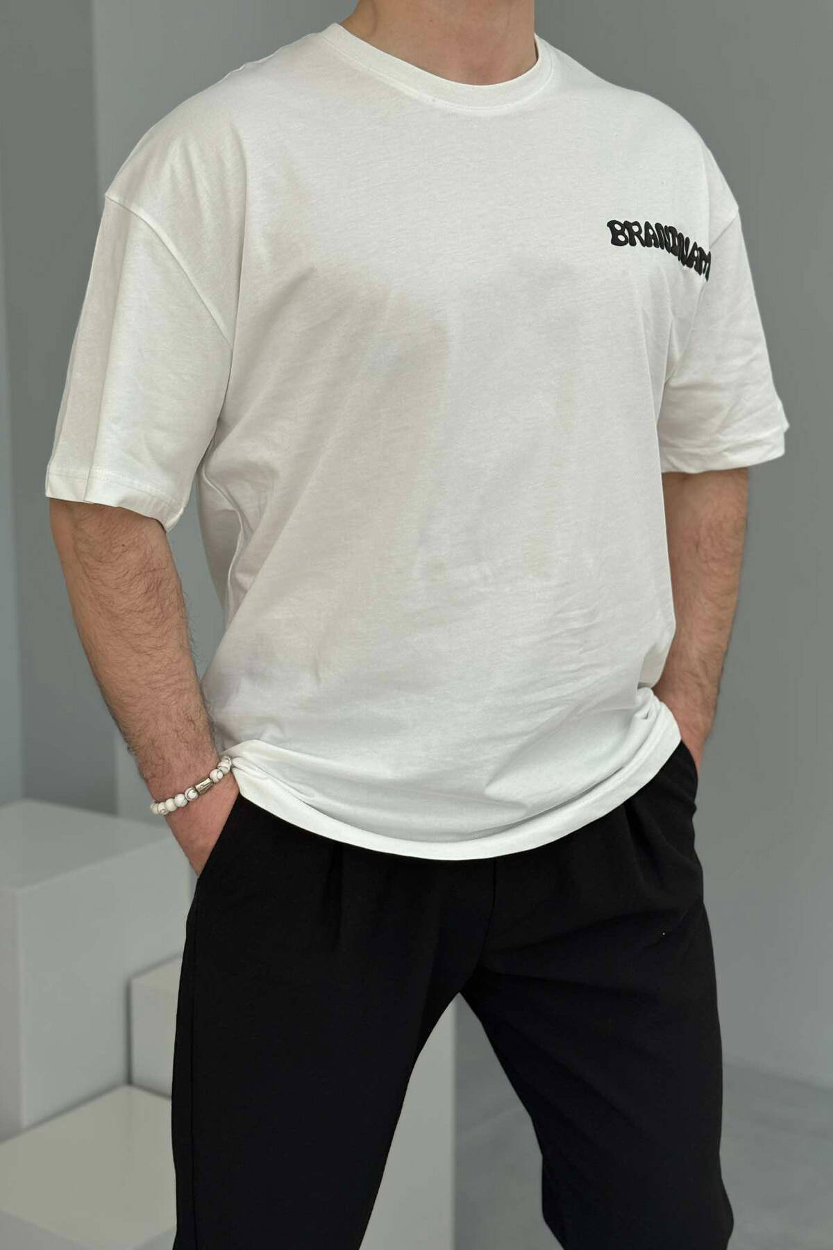 T-SHIRT ME SHKRIME DHE DIZAJN PËR MESHKUJ NË NGJYRËN E BARDHË