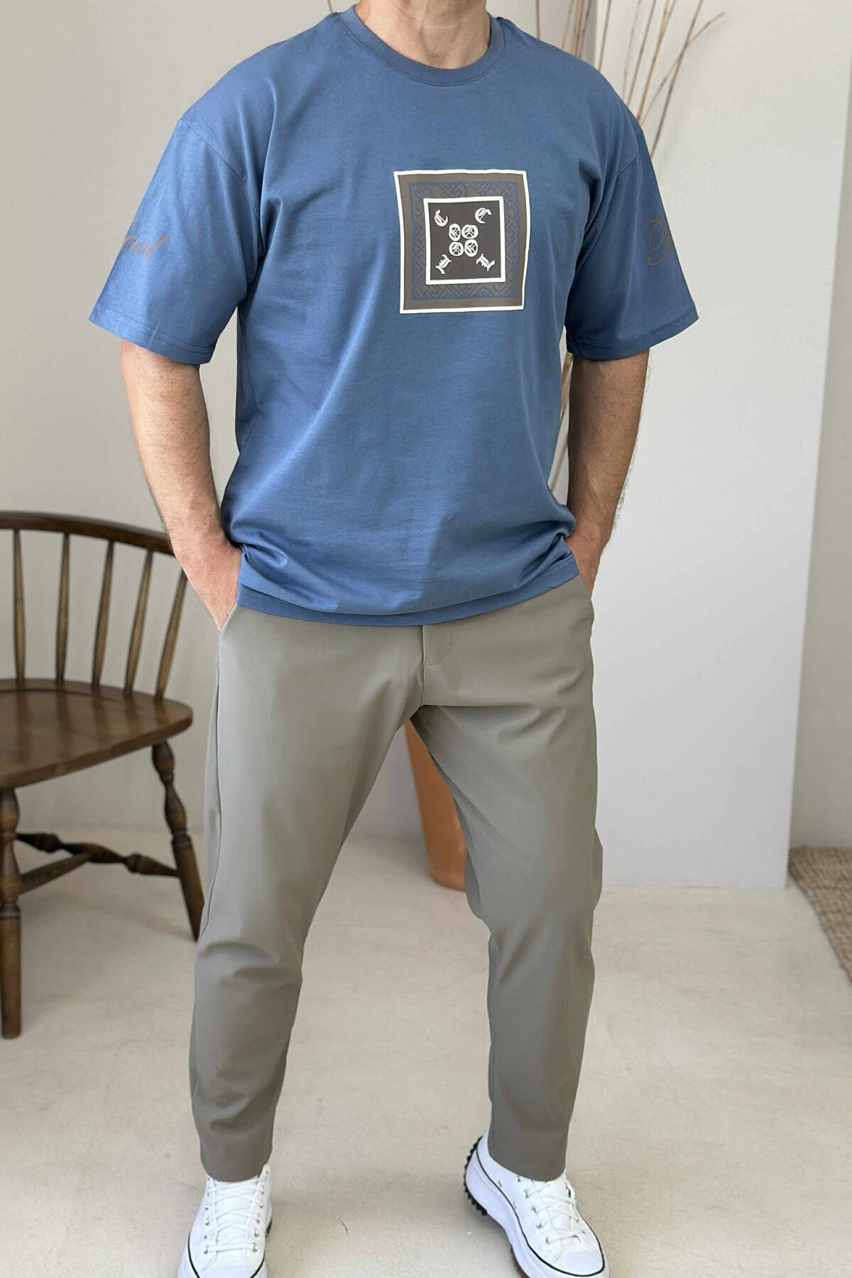 T-SHIRT I THJESHTË ME SHKRIME PËR MESHKUJ NË NGJYRËN BLU E ZBARDHUR