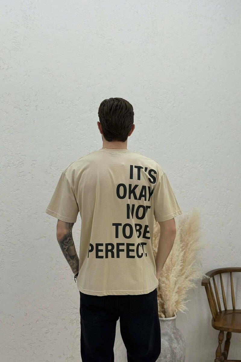 T-SHIRT I THJESHTË ME SHKRIME PËR MESHKUJ NË NGJYRËN PUDER