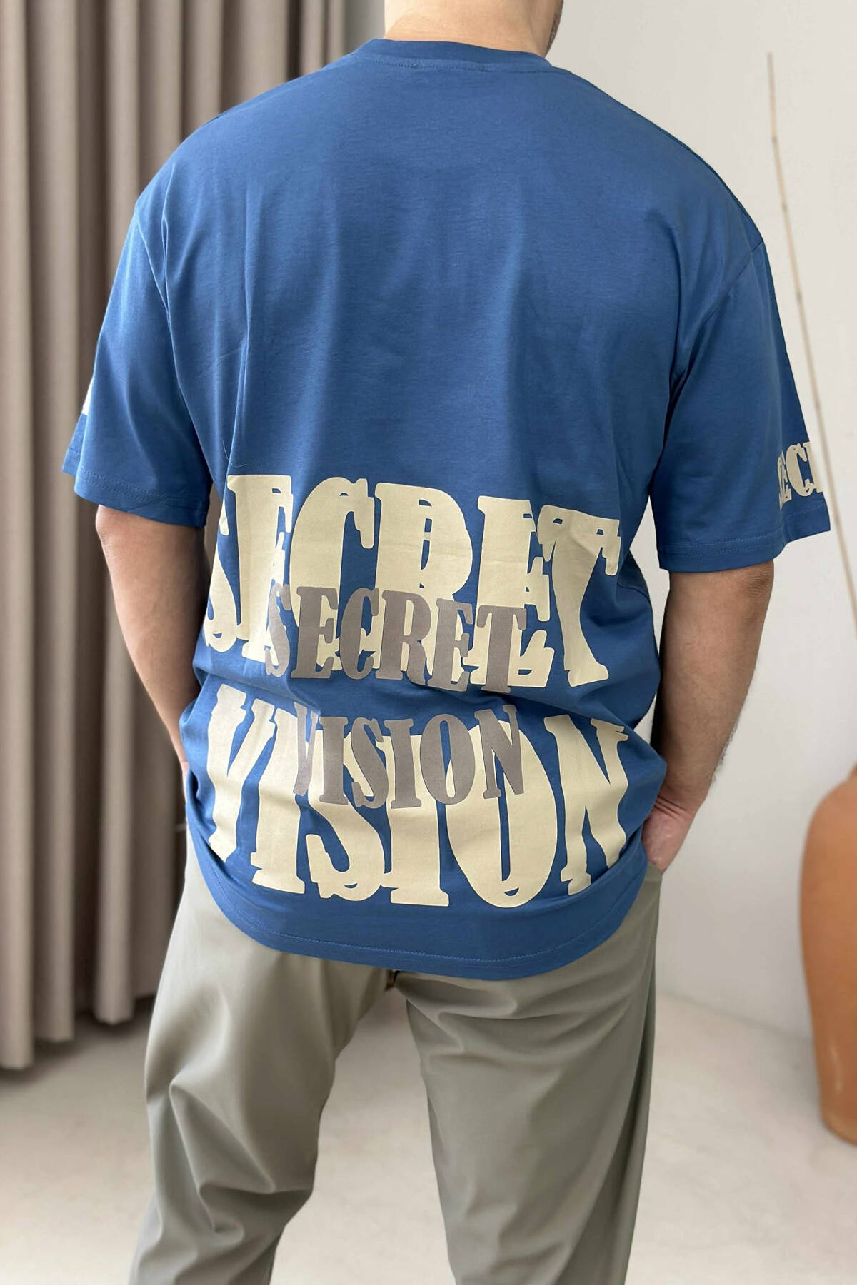T-SHIRT ME SHKRIME PËR MESHKUJ NË NGJYRËN BLU