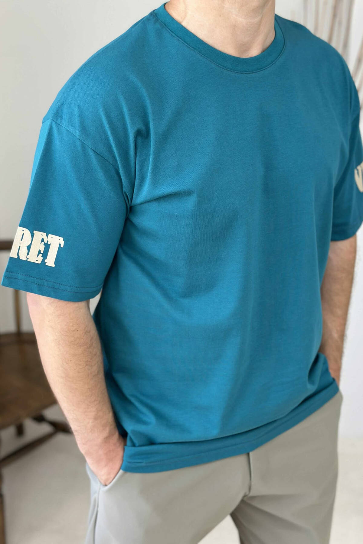 T-SHIRT I THJESHTË ME SHKRIME PËR MESHKUJ NË NGJYRËN JESHILE