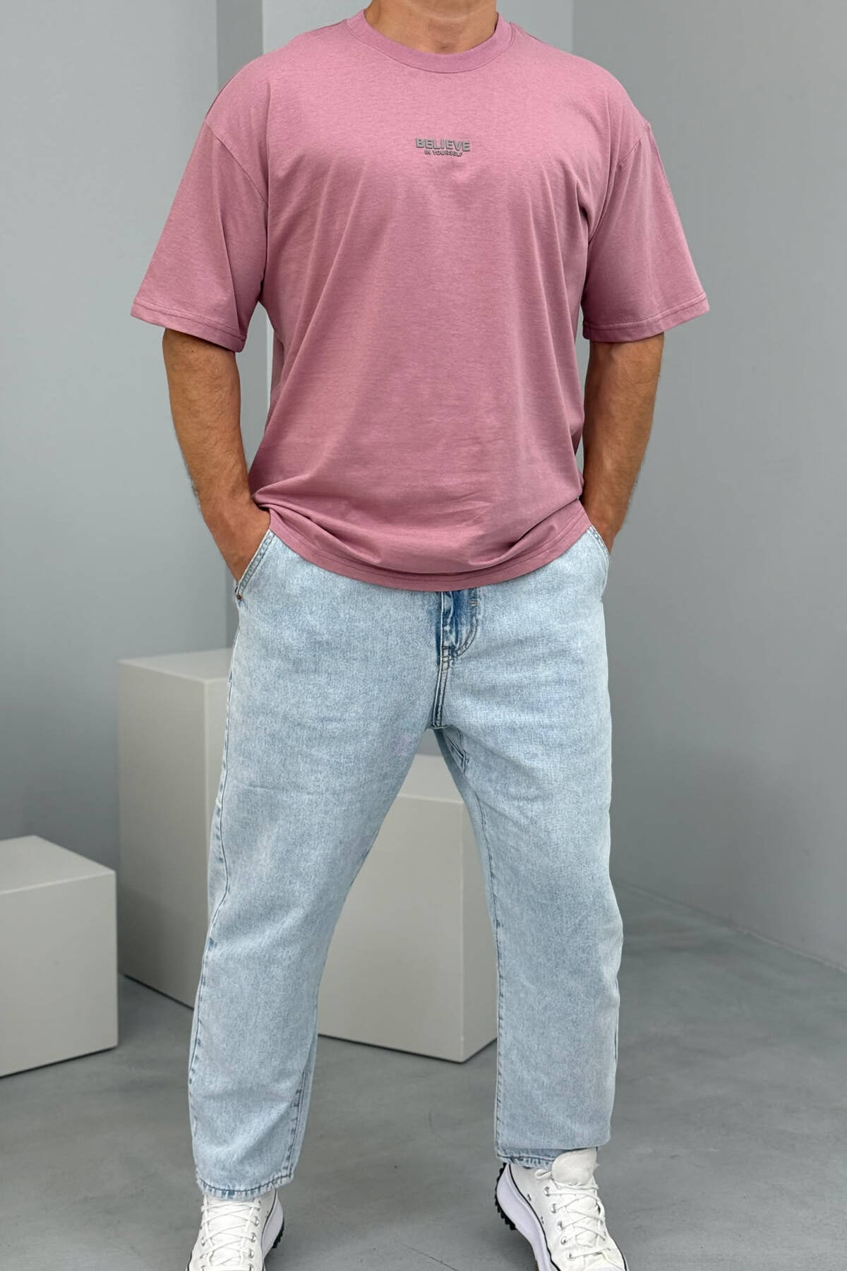 T-SHIRT I THJESHTË ME SHKRIME PËR MESHKUJ NË NGJYRËN BLU E ZBARDHUR