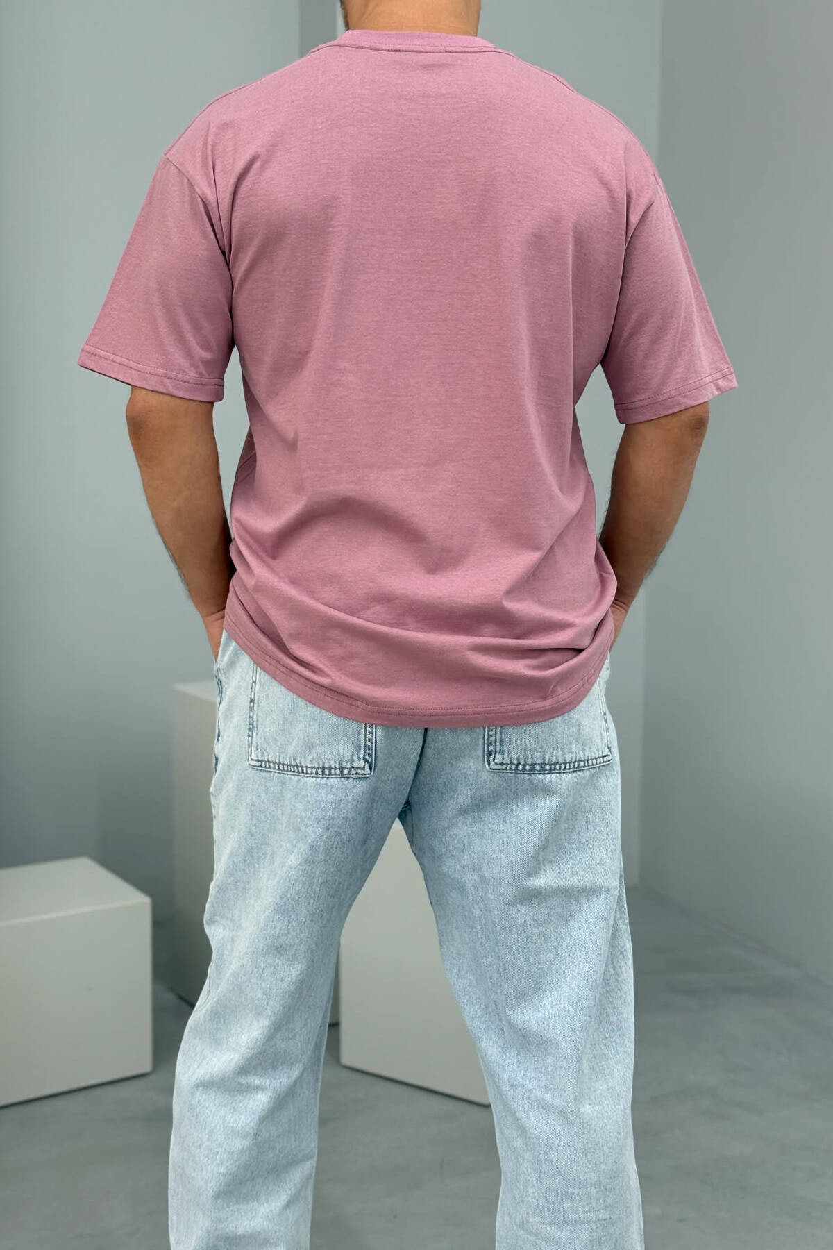T-SHIRT ME SHKRIME PËR MESHKUJ NË NGJYRËN LEJLA E ZBARDHUR