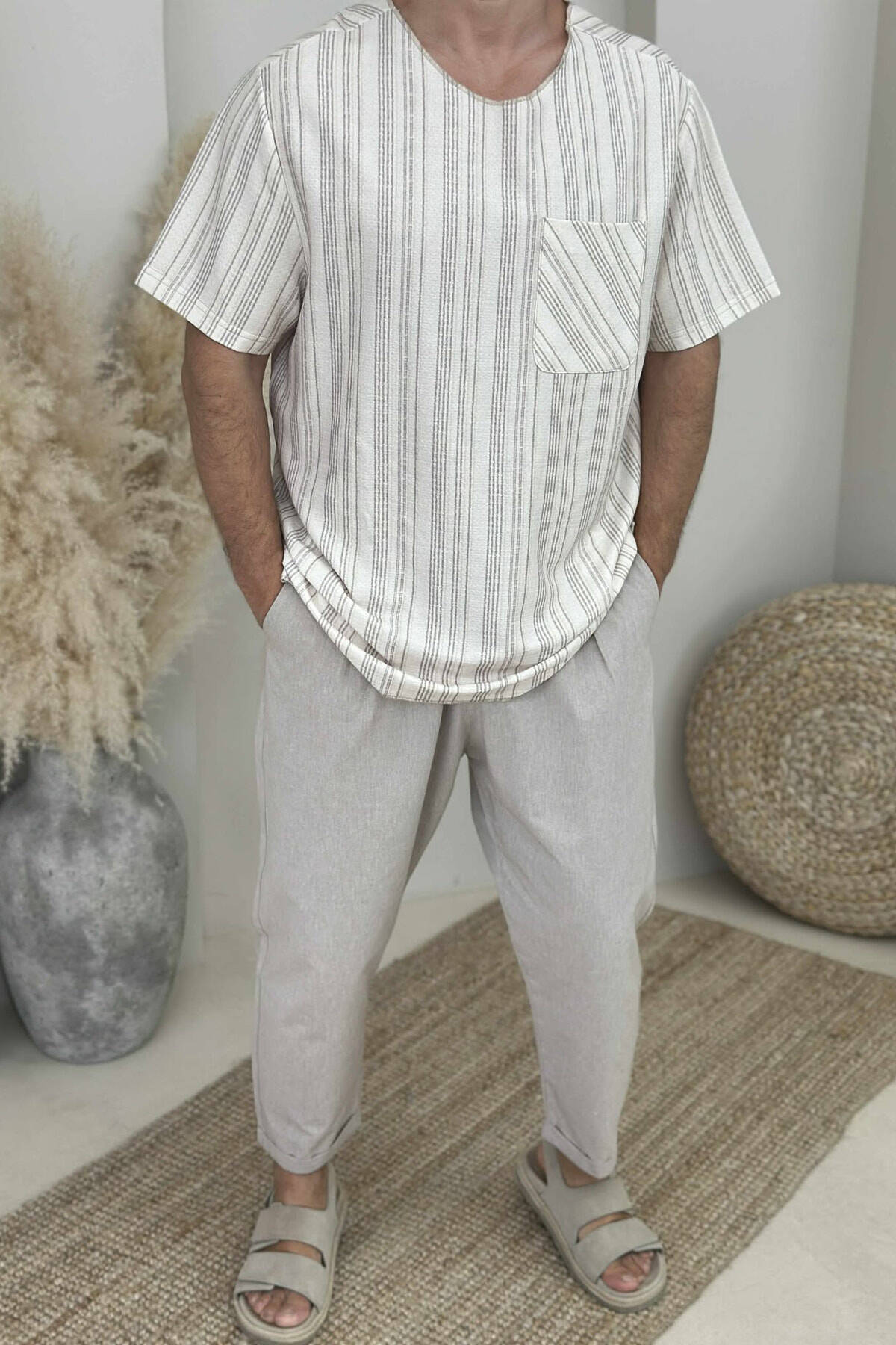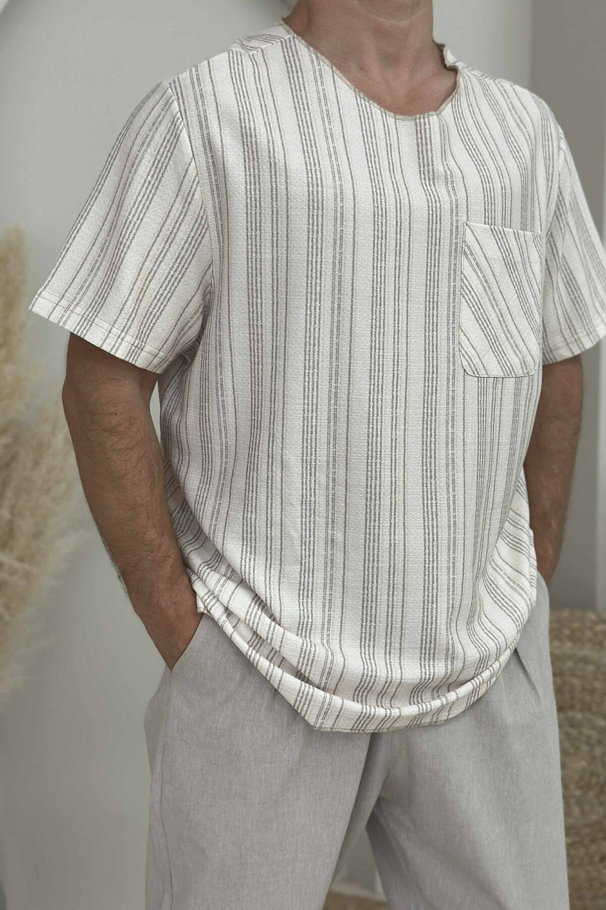 T-SHIRT ME VIJA ME DETAJIN E XHEPIT PËR MESHKUJ NË NGJYRËN KREM