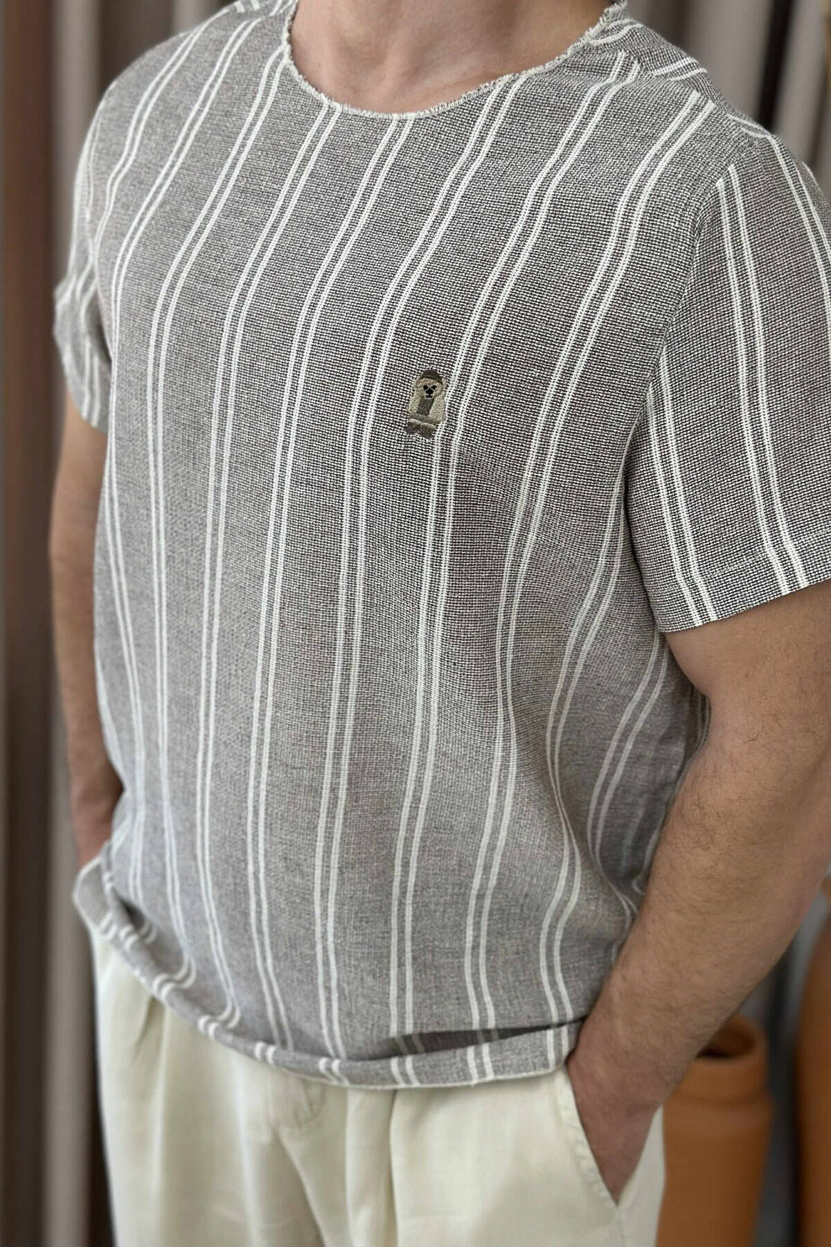 T-SHIRT ME VIJA ME LOGON E ARUSHIT PËR MESHKUJ NË NGJYRËN BEZHË E ERRËT
