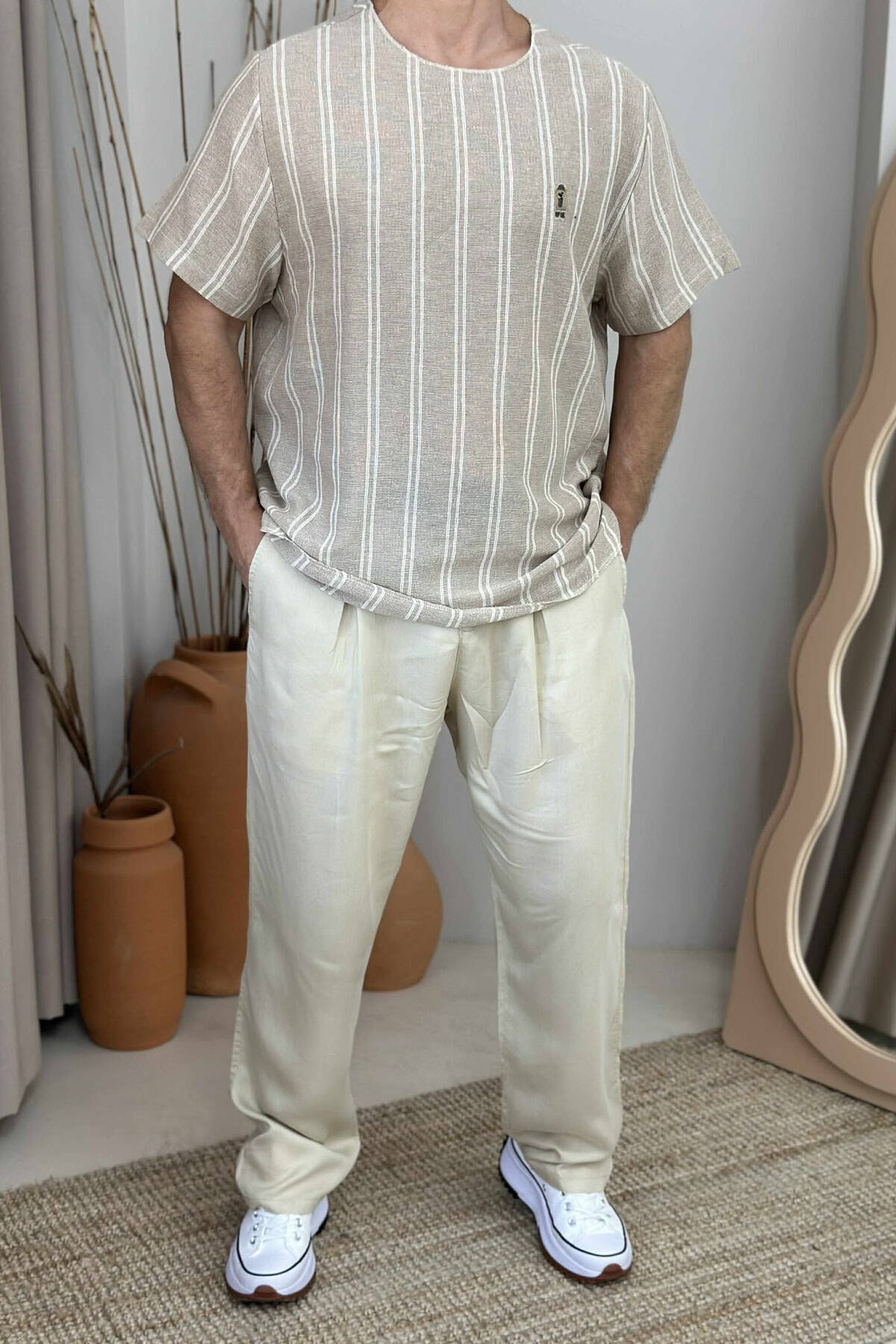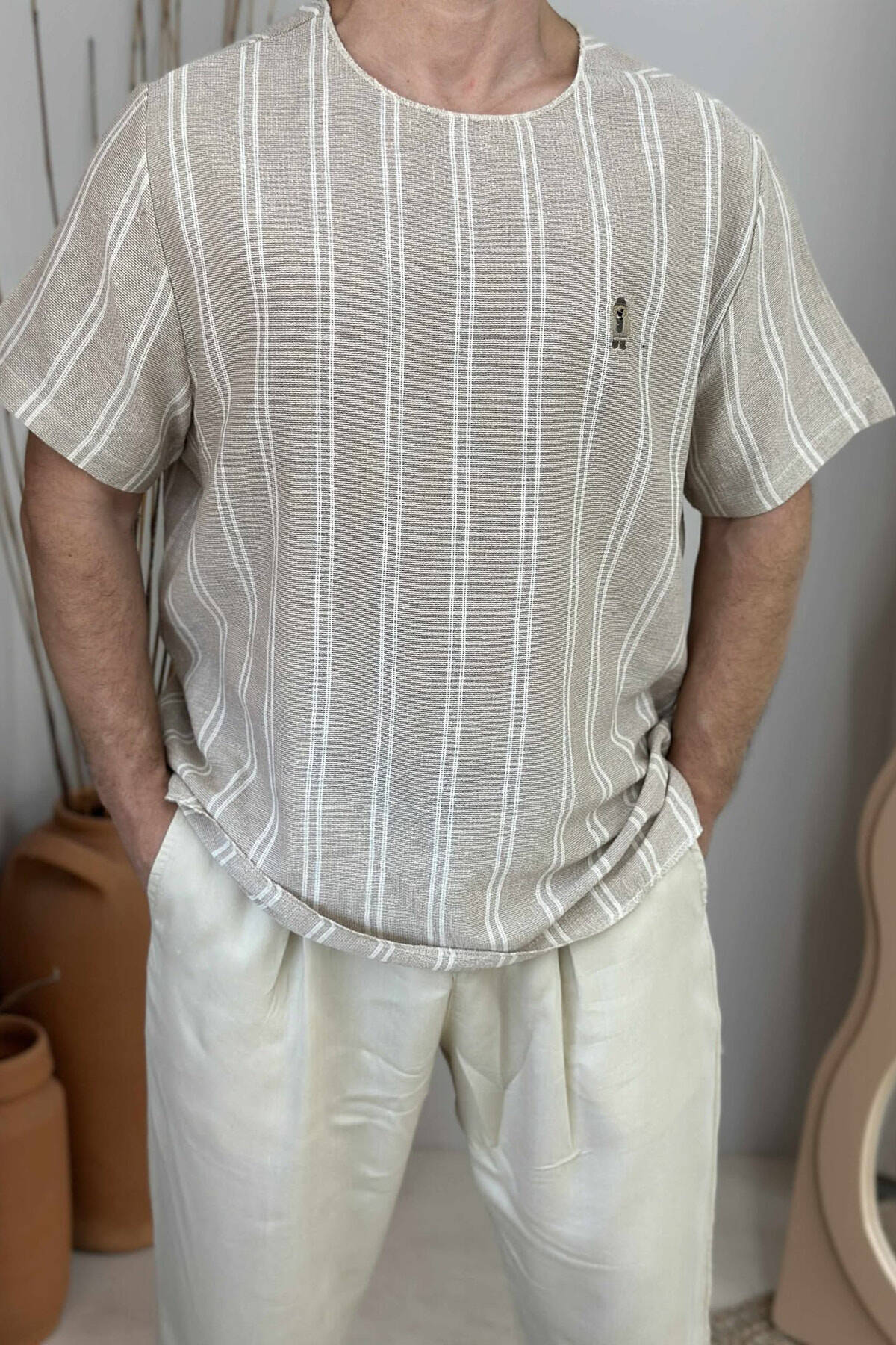 T-SHIRT ME VIJA ME LOGON E ARUSHIT PËR MESHKUJ NË NGJYRËN BEZHË