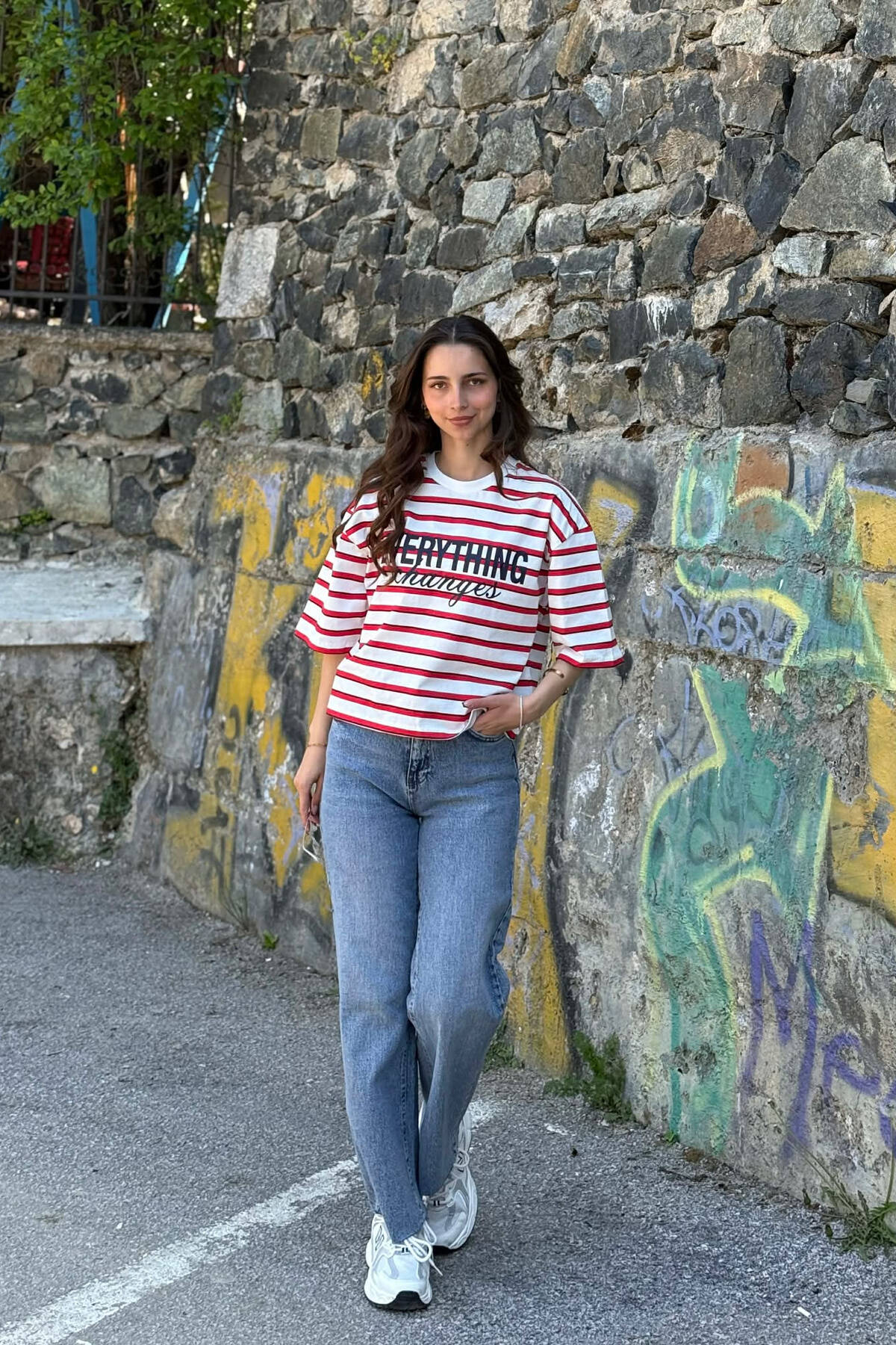 T-SHIRT ME SHKRIM PER FEMRA NE NGJYRE TE KUQE