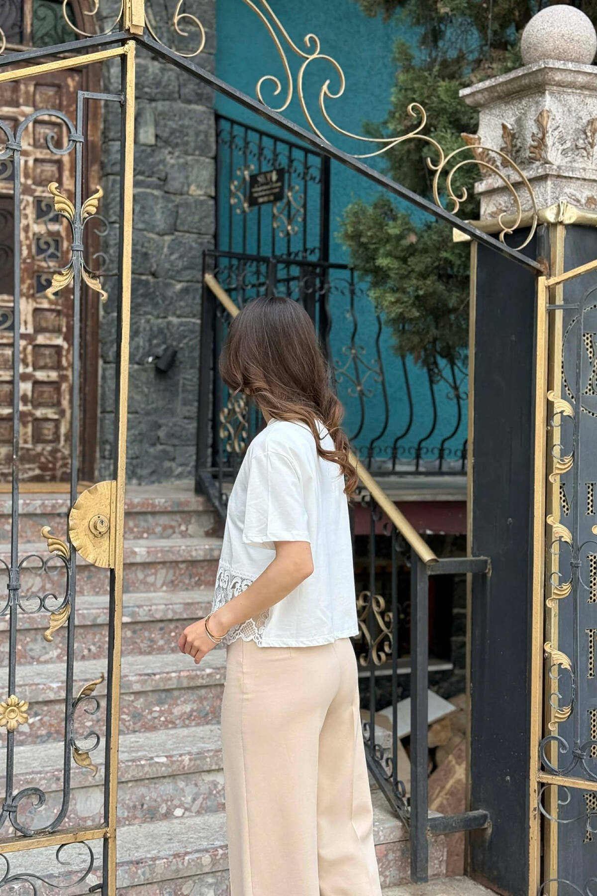 T-SHIRT ME DETAJ DANTELLE PER FEMRA NE NGJYRE TE BARDHE
