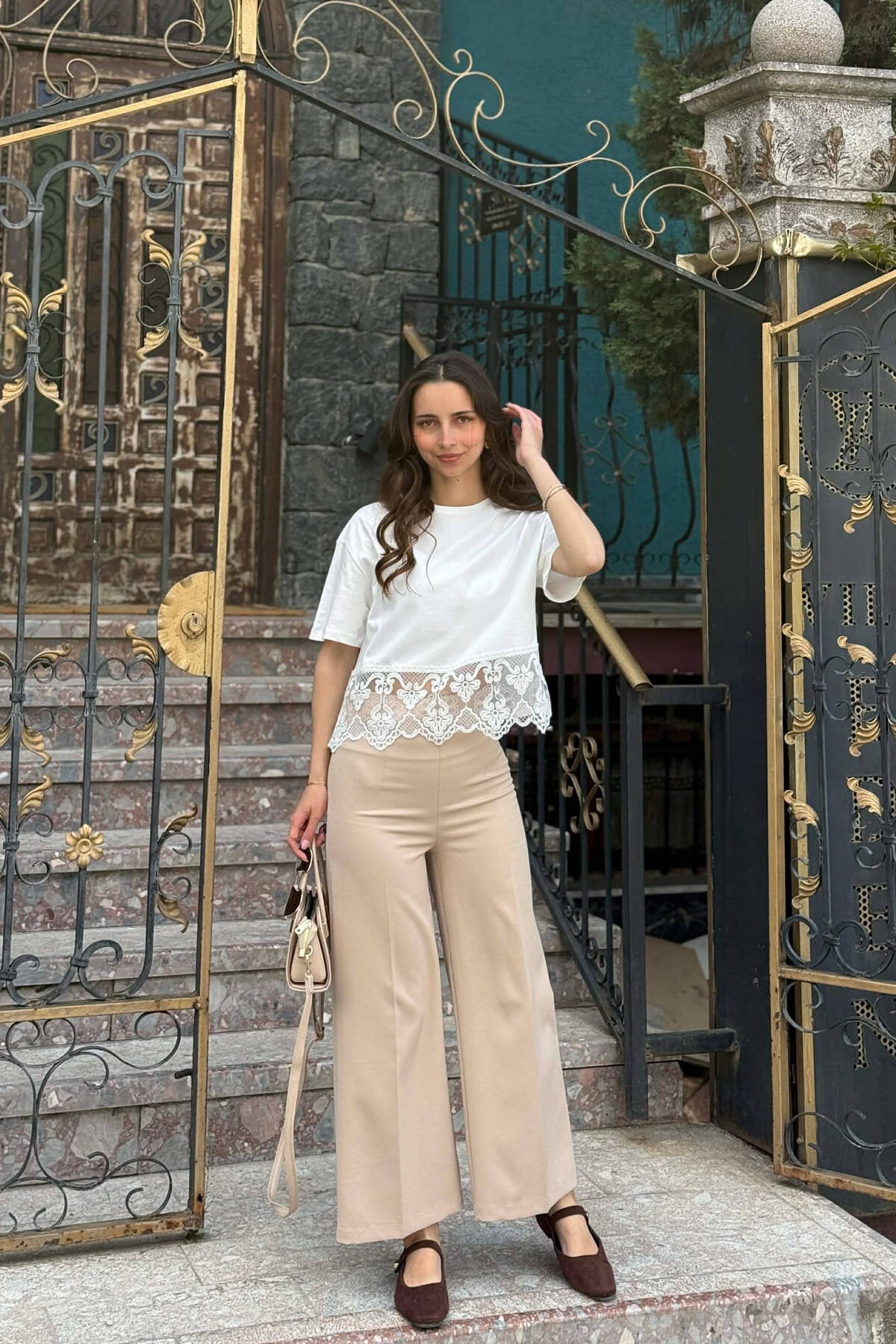 T-SHIRT ME DETAJE DANTELLE PER FEMRA NE NGJYRE TE BARDHE