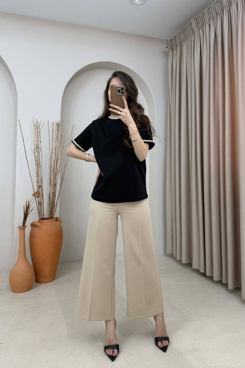 T-SHIRT NJE NGJYRESH ME DETAJ TEK QAFA PER FEMRA NE NGJYRE KREM