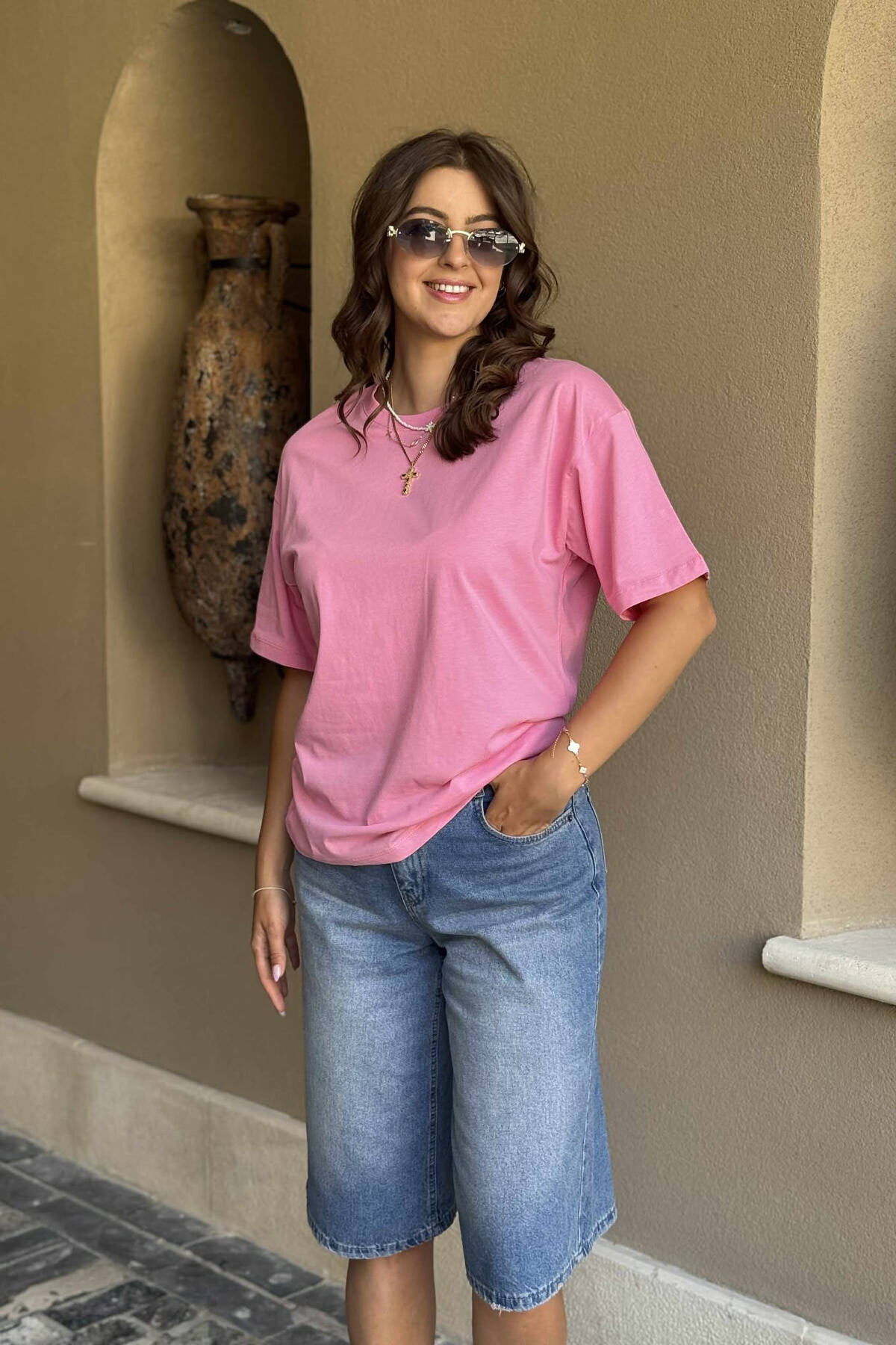T-SHIRT NJË NGJYRËSH I THJESHTË PËR FEMRA NË NGJYRËN ROZË