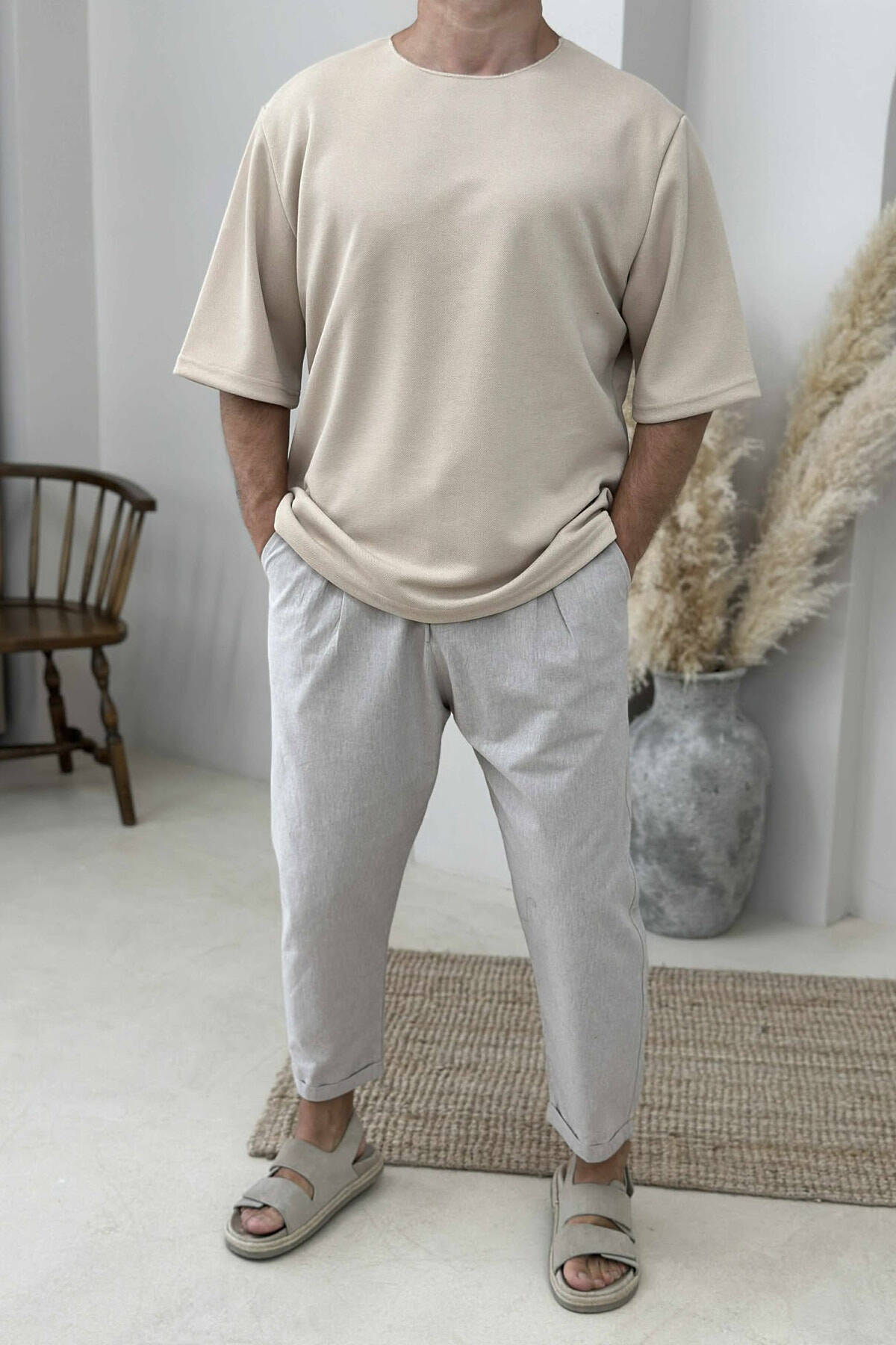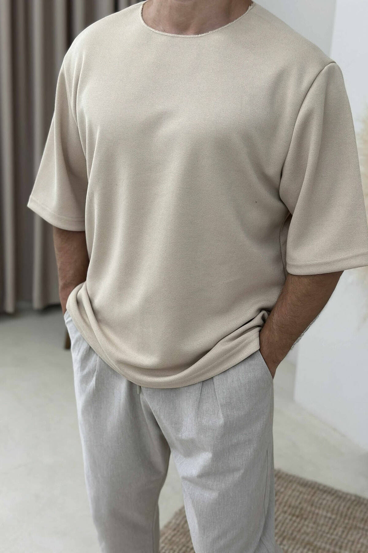 T-SHIRT NJË NGJYRËSH I THJESHTË PËR MESHKUJ NË NGJYRËN BEZHË