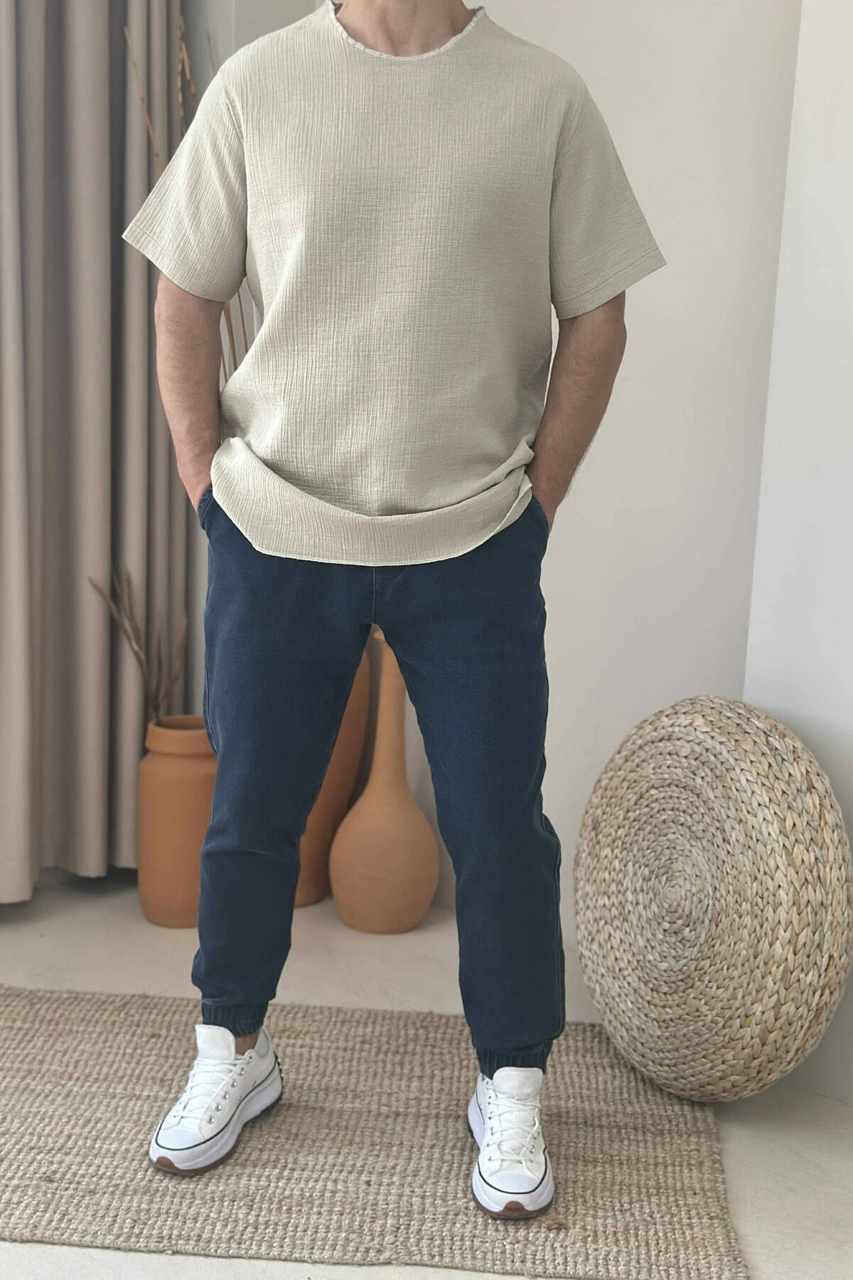 T-SHIRT NJË NGJYRËSH I THJESHTË PËR MESHKUJ NË NGJYRËN BEZHË