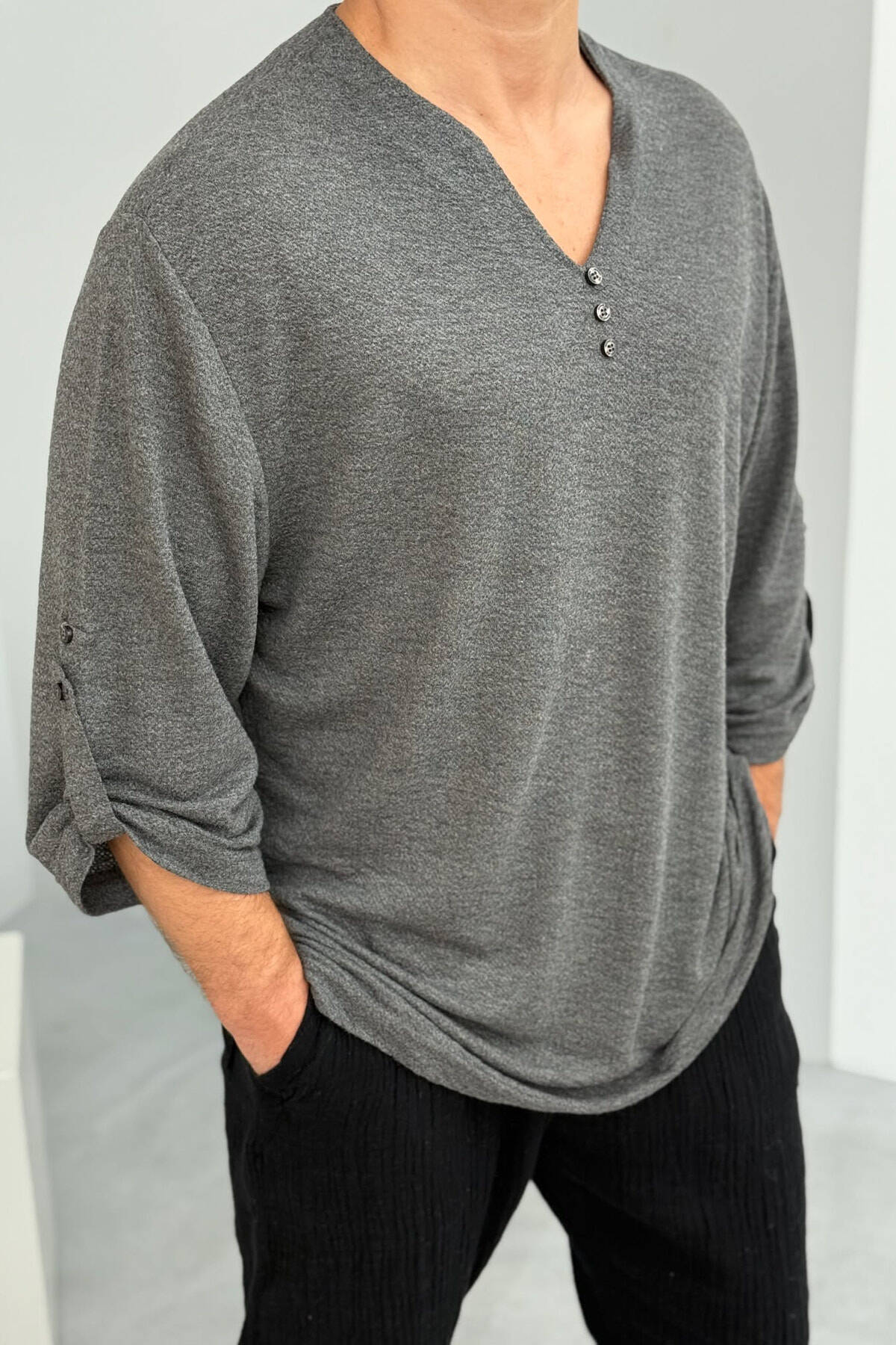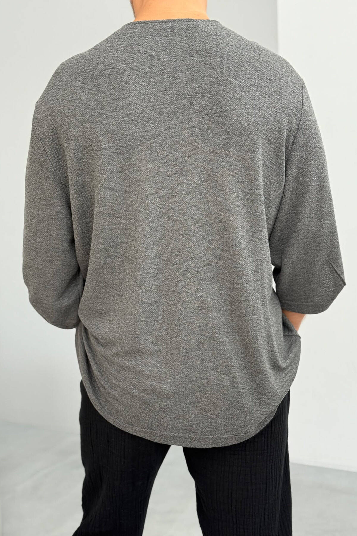 T-SHIRT NJË NGJYRËSH ME DETAJIN KOPSAVE PËR MESHKUJ NË NGJYRËN GRI E ERRËT